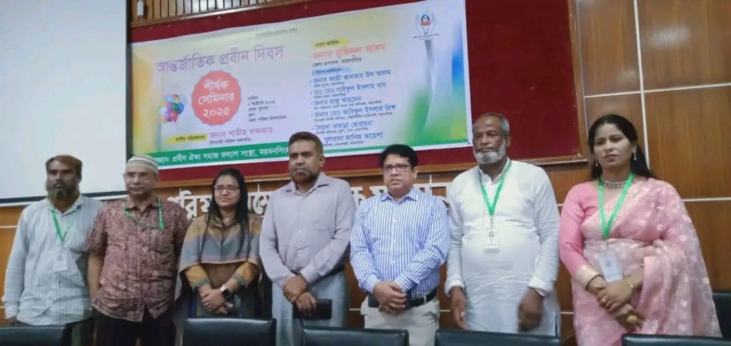 আবুল কালাম আজাদ ময়মনসিংহে আন্তর্জাতিক প্রবীণ দিবস-২০২৫ উপলক্ষে প্রবীণ ঐক্য সমাজ কল্যাণ সংস্থার আয়োজনে এক সেমিনার অনুষ্ঠিত হয়েছে। বুধবার (১ অক্টোবর ২০২৫) সকাল ১০টায় জেলা পরিষদের ভাষা শহীদ আব্দুল জব্বার মিলনায়তনে এ সেমিনার অনুষ্ঠিত হয়।অনুষ্ঠানে প্রধান অতিথি ছিলেন ময়মনসিংহ জেলার অতিরিক্ত জেলা প্রশাসক মোঃ আসাদুজ্জামান। সভাপতিত্ব করেন ময়মনসিংহ প্রবীণ ঐক্য সমাজ কল্যাণ সংস্থার সভাপতি ডাঃ সবুজ তালুকদার। সার্বিক তত্ত্বাবধানে ছিলেন সংগঠনের উপদেষ্টা শামীম খন্দকার।বিশেষ অতিথি হিসেবে উপস্থিত ছিলেন ময়মনসিংহের সিভিল সার্জন মোঃ সাইফুল ইসলাম ও সদর উপজেলা সহকারী কমিশনার (ভূমি) সৈয়দা তামান্না হোরায়রা।ফারজানা নুপুরের সঞ্চালনায় আলোচনায় অংশ নেন সূর্য সেনা সংগঠনের পরিচালক তোফাজ্জল হোসেন, শ্রমিক কল্যাণ ফেডারেশনের নেতা মোঃ বাকী বিল্লাহসহ আরও অনেকে।বক্তারা বলেন, প্রবীণরা সমাজ ও পরিবারের অভিজ্ঞতার ভাণ্ডার। তাদের সম্মান, সুরক্ষা ও কল্যাণ নিশ্চিত করা প্রতিটি মানুষের নৈতিক দায়িত্ব। দিবসটিকে ঘিরে প্রবীণবান্ধব সমাজ গড়ে তোলার আহ্বান জানান তারা।