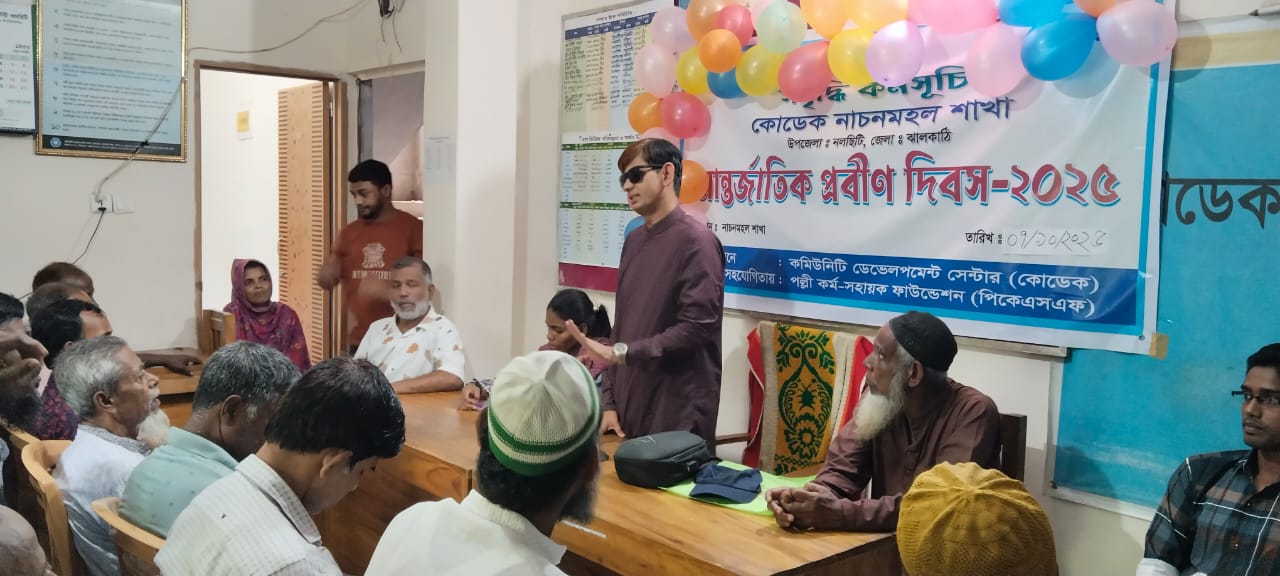 নলছিটি উপজেলা নাচনমহল ইউনিয়নে নাচনমহল কোডেক শাখার উদ্যোগে আন্তর্জাতিক প্রবীণ দিবস পালিত হয়েছে রোজ মঙ্গলবার সকাল ১১ টার সময় অনুষ্ঠিত হয়েছে নাচনমহল কোডেক শাখার হল রুমে অনুষ্ঠিত হয়, এই অনুষ্ঠানে উপস্থিত ছিলেন প্রধান অতিথি হিসেবে ০৭ নং নাচনমহল ইউনিয়ন পরিষদের প্যানেল চেয়ারম্যান শাহ আলম খোকন বিশেষ অতিথি হিসেবে উপস্থিত ছিলেন লিমা আক্তার, ছাত্র সমন্বয়ক ঝালকাঠি জেলা, এয়সময় আরো উপস্থিত ছিলেন উপজেলা প্রকল্প সমন্বয়কারী মোঃ তসলিম ওয়াহেদ প্রধান অতিথি বক্তব্য বলেন প্রবীণ দিবসের তাৎপর্য ও সমৃদ্ধি প্রকল্পের কার্যক্রম এর গুনগত দিক তুলে ধরেন সেই সাথে প্রবীণদের জন্য একটি প্লাটফর্ম তৈরি হোক, প্রবীণরা যাতে এগিয়ে যেতে পারে। সকলের বক্তব্য শেষে একটি রেলী আয়োজন করা হয়েছে।