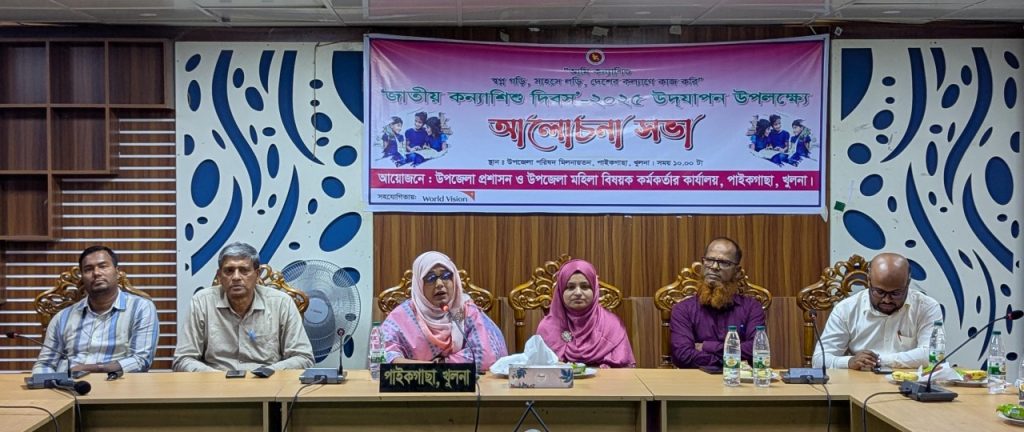 বুধবার (৮ অক্টোবর) সকাল ১০টায় উপজেলা পরিষদ মিলনায়তনে উপজেলা প্রশাসন ও উপজেলা মহিলা বিষয়ক কার্যালয়ের উদ্যোগে আয়োজিত আলোচনা সভায় প্রধান অতিথি হিসেবে উপস্থিত ছিলেন উপজেলা নির্বাহী অফিসার মাহেরা নাজনীন।অনুষ্ঠানে সভাপতিত্ব করেন উপজেলা মহিলা বিষয়ক কর্মকর্তা রেশমা আক্তার। এতে বিশেষ অতিথি হিসেবে উপস্থিত ছিলেন উপজেলা কৃষি কর্মকর্তা কৃষিবিদ মোঃ একরামুল হোসেন, প্রাথমিক শিক্ষা কর্মকর্তা বিদ্যুৎ রঞ্জন শাহা, মাধ্যমিক শিক্ষা কর্মকর্তা শাহজাহান আলী শেখ, পরিবার পরিকল্পনা কর্মকর্তা আব্দুল্লাহ আল মামুন, সমাজসেবা কর্মকর্তা অনাথ কুমার বিশ্বাস, এসএফডিএফ কর্মকর্তা জিএম জাকারিয়া, সমবায় কর্মকর্তা হুমায়ুন কবির এবং প্রেসক্লাব পাইকগাছার সাধারণ সম্পাদক এম জালাল উদ্দীন।অনুষ্ঠান সঞ্চালনা করেন বজলুর রহমান। এসময় উপজেলার বিভিন্ন শিক্ষা প্রতিষ্ঠানের কোমলমতি শিক্ষার্থী, অভিভাবক, শিক্ষক ও সাংবাদিকবৃন্দ উপস্থিত ছিলেন। আলোচনা সভায় বক্তারা কন্যাশিশুর অধিকার, নিরাপত্তা, শিক্ষা ও আত্মনির্ভরশীলতার গুরুত্ব তুলে ধরেন। পরে দিবসটি উপলক্ষে আয়োজিত প্রতিযোগিতায় অংশগ্রহণকারী শিক্ষার্থীদের মধ্যে পুরস্কার বিতরণ করা হয়।
