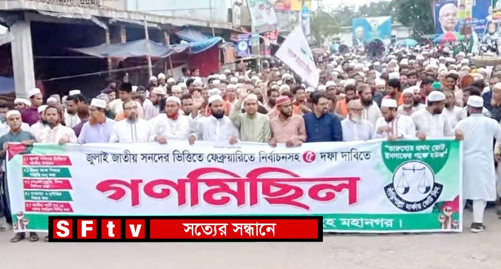 ময়মনসিংহ মহানগর জামায়াতের আমীর এবং সদর আসনের সংসদ সদস্য পদপ্রার্থী মাওলানা কামরুল আহসান এমরুলের নেতৃত্বে মিছিলটি রেলওয়ে কৃষ্ণচূড়া চত্বর থেকে শুরু হয়ে স্টেশন রোড, গাঙ্গিনার পাড়, সি.কে. ঘোষ রোড অতিক্রম করে চরপাড়ায় গিয়ে শেষ হয়।