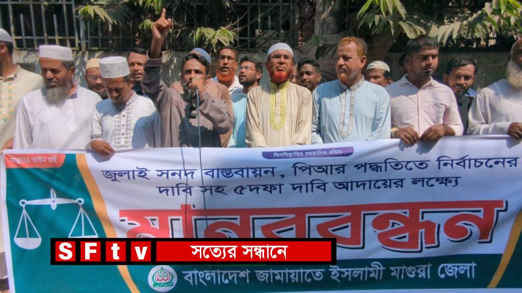 বাংলাদেশ জামায়াতে ইসলামী মাগুরা জেলা আমির অধ্যাপক সাঈদ আহমদ বাচ্চু বলেন, “তৃতীয় দফায় মাগুরায় আমরা পিআর পদ্ধতিকে জুলাই জাতীয় সনদে অন্তর্ভুক্তি ও গণভোটের দাবিসহ ৫ দফা দাবিতে মানববন্ধন করছি।” তিনি জানান, তাদের ৫ দফা দাবির মধ্যে রয়েছে—