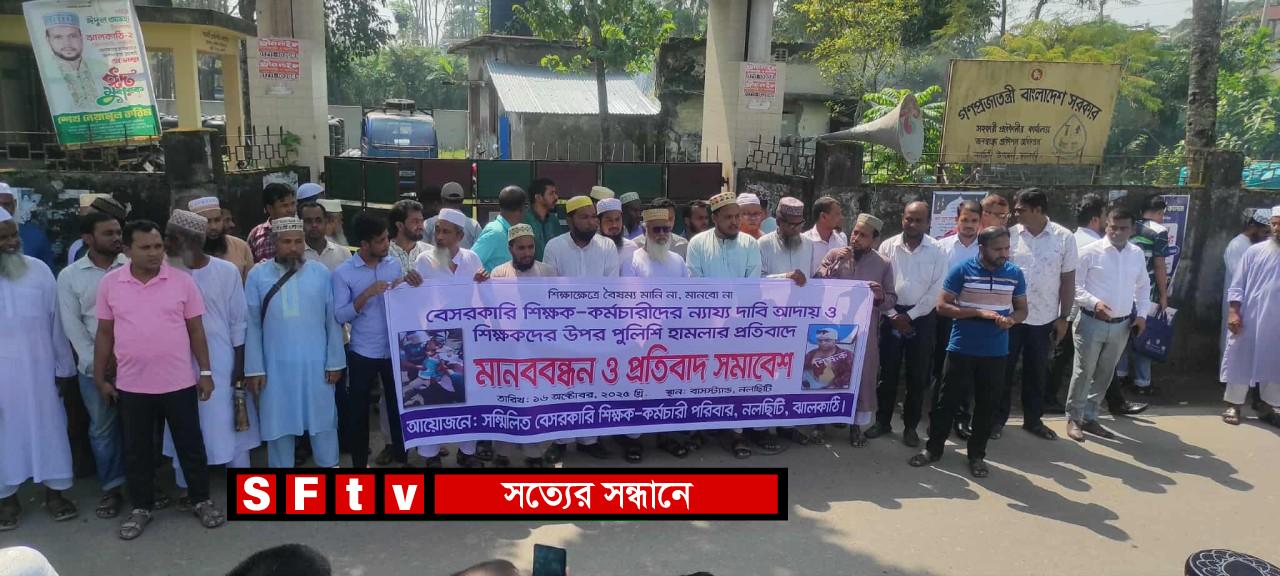 বৈষম্য বিরোধে নলছিটিতে শিক্ষকদের মানববন্ধন