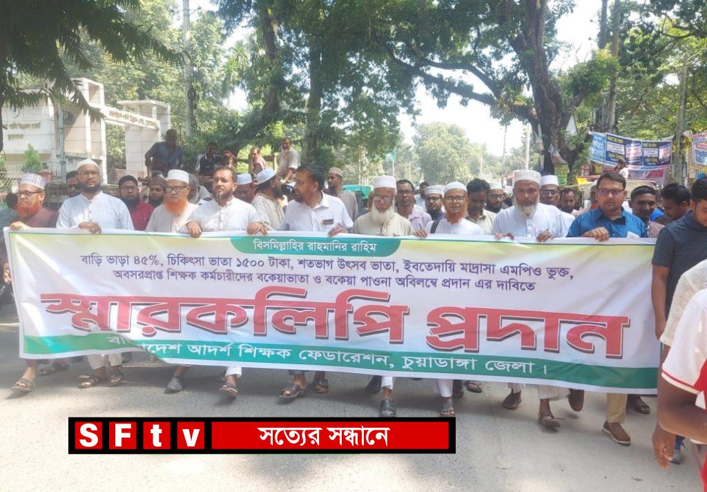 সমগ্র দেশের শিক্ষকদের এই ন্যায্য দাবির সাথে একাত্মা প্রকাশ করে আজ ২০ অক্টোবর সোমবার বাংলাদেশ আদর্শ শিক্ষক ফেডারেশন চুয়াডাঙ্গা জেলা শাখার উদ্যোগে একটি বিশাল র্যালি চুয়াডাঙ্গা সরকারি কলেজ থেকে শুরু করে জেলা প্রশাসকের কার্যলায়ে গিয়ে শেষ করেন।