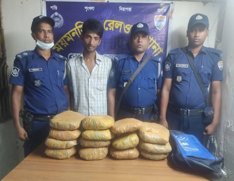 আবুল কালাম আজাদ : ময়মনসিংহ রেলওয়ে থানা পুলিশের বিশেষ অভিযানে ১৪ কেজি গাঁজাসহ এক মাদক ব্যবসায়ীকে গ্রেফতার করা হয়েছে। সোমবার (২০ অক্টোবর ২০২৫) সন্ধ্যা সাড়ে ৬টার দিকে ময়মনসিংহ রেলওয়ে থানার অফিসার ইনচার্জ (ওসি) মোহাম্মদ আকতার হোসেনের নেতৃত্বে, গোপন সংবাদের ভিত্তিতে সঙ্গীয় ফোর্সসহ আন্তঃনগর বিজয় এক্সপ্রেস ট্রেনে অভিযান পরিচালনা করা হয়। অভিযানে কালো কাপড়ের ব্যাগে থাকা আনুমানিক ১৪ কেজি গাঁজাসহ মো. আব্দুর সাত্তার সুজন (৩৫) নামে এক ব্যক্তিকে আটক করা হয়।