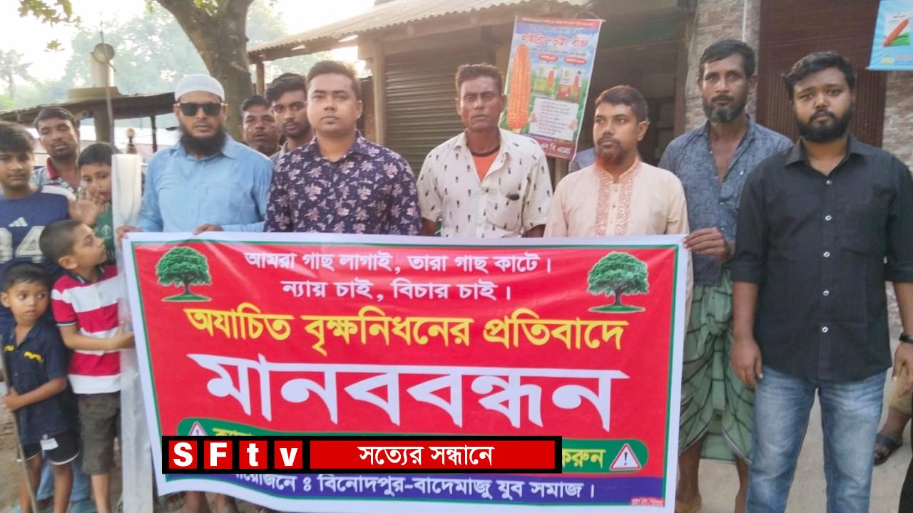 আলমডাঙ্গায় যুব সমাজের উদ্যোগে ক্যানালের ২০০ গাছ কেটে ফেলার প্রতিবাদে মানববন্ধন