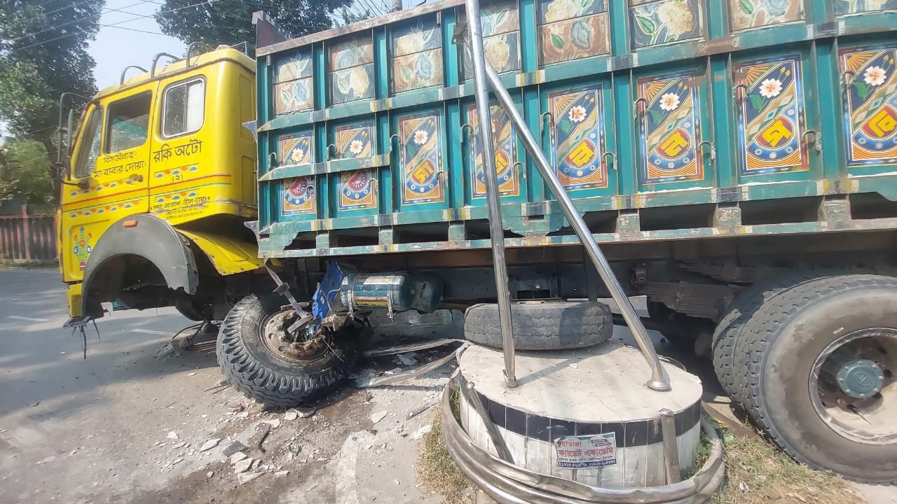 চুয়াডাঙ্গা, ২৭ অক্টোবর ২০২৫ (সোমবার) ভোরে চুয়াডাঙ্গা শহরের কোর্টমোড় এলাকার দোয়েল চত্বরে একটি ট্রাকের ধাক্কায় ট্রাফিক ছাউনিতে স্থাপিত দোয়েলের ভাস্কর্য ভেঙে চুরমার হয়ে গেছে। স্থানীয় সূত্রে জানা যায়, ভোর বেলা দ্রুতগামী একটি ট্রাক নিয়ন্ত্রণ হারিয়ে দোয়েল চত্বরের ট্রাফিক ছাউনিতে ধাক্কা দেয়। এতে দোয়েল ভাস্কর্যটি মারাত্মকভাবে ক্ষতিগ্রস্ত হয়ে ভেঙে পড়ে। ঘটনায় কোনো হতাহতের ঘটনা ঘটেনি বলে নিশ্চিত করেছেন প্রত্যক্ষদর্শীরা। তবে ট্রাকটি এখনো ঘটনাস্থলেই অবস্থান করছে। এদিকে খবর পেয়ে পুলিশ ঘটনাস্থলে পৌঁছে পরিস্থিতি নিয়ন্ত্রণে আনে এবং ট্রাকটি জব্দের প্রক্রিয়া চলছে।