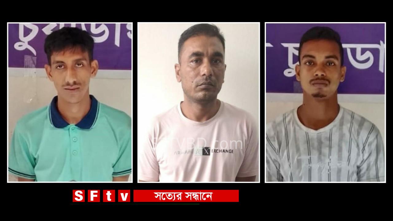 চুয়াডাঙ্গার আলমডাঙ্গায় দস্যুতা মামলার ঘটনায় তিন আসামিকে গ্রেফতার করেছে পুলিশ। এ ঘটনায় গ্রেফতারকৃতদের মধ্যে একজন আদালতে স্বীকারোক্তিমূলক জবানবন্দি দিয়েছেন। জানা গেছে, গত ১৫ অক্টোবর ২০২৫ তারিখে মালয়েশিয়া প্রবাসী মো. মিরাজুল ইসলাম (৪৫), পিতা-মৃত আকবর আলী, সাং-আসাননগর, থানা-আলমডাঙ্গা, জেলা-চুয়াডাঙ্গা বিদেশ থেকে নিজ বাড়িতে আসেন। এরপর ২৪ অক্টোবর ভোর ৪টা ২০ মিনিটের দিকে তিনি প্রাইভেটকারে (রেজি. নং: রাজ. মেট্রো-ক-০২-০১৪৬) তার মা মোছাঃ সজিরন নেছা, স্ত্রী ও ছোট ভাই নাজমুল ইসলামকে নিয়ে যশোরে আত্মীয়ের বাড়ি বেড়াতে রওনা হন। গাড়িটি রোয়াকুলি গ্রামের টেংরামারী মাঠে পৌঁছালে রাস্তায় গাছের ডাল ফেলে রাখা অবস্থায় বাধার মুখে পড়ে। এ সময় মুখোশধারী ৩-৪ জন দস্যু ধারালো চাপাতি ও রামদা নিয়ে গাড়িটি ঘিরে ধরে। তারা বাদীর মায়ের স্বর্ণালঙ্কার, মোবাইল ফোন ও নগদ টাকা ছিনিয়ে নেয়। ঘটনার পর ভুক্তভোগী মিরাজুল ইসলাম বাদী হয়ে ২৬ অক্টোবর ২০২৫ তারিখে আলমডাঙ্গা থানায় দস্যুতা মামলা (নং-৩৫, ধারা-৩৯২ পেনাল কোড) দায়ের করেন। মামলার পর আলমডাঙ্গা থানার অফিসার ইনচার্জ (ওসি) মাসুদুর রহমান পিপিএম-এর নেতৃত্বে পুলিশ পরিদর্শক (তদন্ত) মো. আজগর আলী সঙ্গীয় ফোর্স নিয়ে অভিযান পরিচালনা করেন। তথ্য-প্রযুক্তির সহায়তায় মামলার সঙ্গে জড়িত তিন আসামিকে গ্রেফতার করা হয়।গ্রেফতারকৃতরা হলেন মো. আল আমিন হোসেন (২২), পিতা মজনুর রহমান, গ্রাম ডাউকি (ইসলামপাড়া) মো. মিজানুর রহমান মন্টু (৪২), পিতা আব্দুর রাজ্জাক, গ্রাম আসাননগর মো. শিলন হোসেন (২০), পিতা মোশারোফ হোসেন, গ্রাম কামালপুর (চরপাড়া) তিনজনই আলমডাঙ্গা থানাধীন এলাকার বাসিন্দা।গ্রেফতারের পর মো. আল আমিন হোসেন আদালতে ফৌজদারি কার্যবিধির ১৬৪ ধারায় দস্যুতা ঘটনার সঙ্গে নিজের সম্পৃক্ততার কথা স্বীকার করে জবানবন্দি দিয়েছেন।আলমডাঙ্গা থানার অফিসার ইনচার্জ মাসুদুর রহমান পিপিএম বলেন “ঘটনার পরপরই পুলিশ দ্রুত তদন্ত শুরু করে। প্রযুক্তির সহায়তা ও মাঠ পর্যায়ের তথ্যের ভিত্তিতে দস্যুতা ঘটনার সঙ্গে জড়িতদের শনাক্ত করে গ্রেফতার করা হয়েছে। এলাকায় শান্তি-শৃঙ্খলা বজায় রাখতে এ ধরনের অপরাধের বিরুদ্ধে পুলিশের অভিযান অব্যাহত থাকবে।”