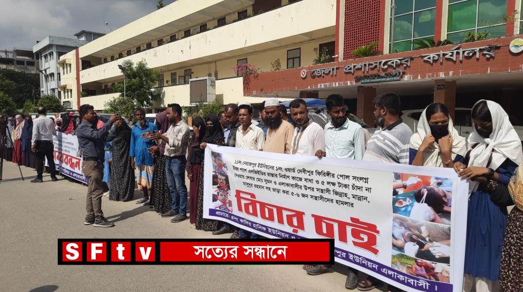নোয়াখালীতে রাস্তার কাজে বাঁধা ও হামলার ঘটনায় মানববন্ধন ও স্বারকলিপি প্রদান