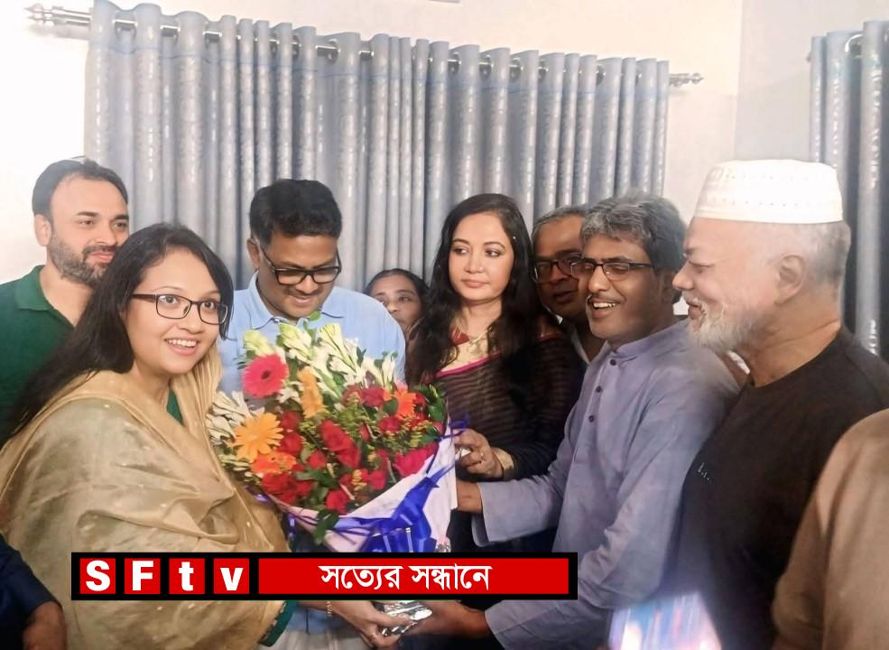 ছবি: নাটোর-১ আসনের বিএনপি মনোনীত প্রার্থী ব্যারিস্টার ফারজানা শারমিন পুতুল ও নাটোর-২ আসনের প্রার্থী, সাবেক উপমন্ত্রী এম. রুহুল কুদ্দুস তালুকদার দুলু-সৌজন্য সাক্ষাতের মুহূর্তে এক ফ্রেমে।