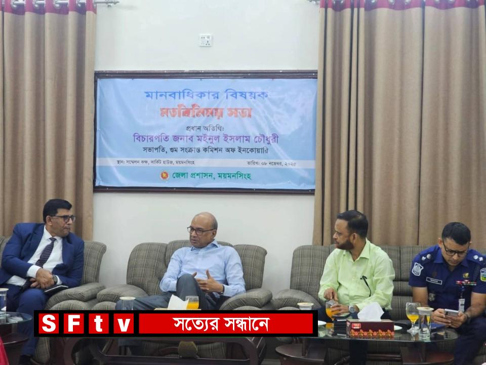 গুম সংক্রান্ত কমিশন অফ ইনকোয়ারির উদ্যোগে মানবাধিকার বিষয়ক এক মতবিনিময় সভা অনুষ্ঠিত হয়েছে শনিবার ৭ নভেম্বর ২০২৫ ময়মনসিংহ সার্কিট হাউজে। অনুষ্ঠানে প্রধান অতিথি হিসেবে উপস্থিত ছিলেন কমিশনের সভাপতি বিচারপতি মইনুল ইসলাম চৌধুরী।সভায় আরও উপস্থিত ছিলেন ময়মনসিংহ বিভাগের বিভাগীয় কমিশনার মোঃ মোখতার আহমেদ, জেলা প্রশাসক মুফিদুল আলমসহ প্রশাসনের ঊর্ধ্বতন কর্মকর্তা, মানবাধিকারকর্মী ও স্থানীয় গণমাধ্যম প্রতিনিধিরা।বক্তারা বলেন, গুম, নিখোঁজ ও জোরপূর্বক গায়েব হওয়ার মতো ঘটনাগুলো শুধু ভুক্তভোগী পরিবারের জন্য নয়, বরং গোটা সমাজের জন্য গভীর মানবাধিকার লঙ্ঘন। এসব ঘটনার পুনরাবৃত্তি রোধে রাষ্ট্রীয় ও সামাজিক সচেতনতা বৃদ্ধি, নিরপেক্ষ তদন্ত এবং দায়ীদের বিচারের আওতায় আনা জরুরি।প্রধান অতিথি বিচারপতি মইনুল ইসলাম চৌধুরী বলেন, “মানবাধিকারের মূল ভিত্তি হলো ন্যায়বিচার ও স্বচ্ছতা। গুমের শিকার পরিবারের আর্তনাদ আমাদের সকলের বিবেককে নাড়া দেয়। কমিশনের লক্ষ্য হলো প্রতিটি অভিযোগ নিরপেক্ষভাবে যাচাই করে সত্য উদঘাটন করা।”অনুষ্ঠানের শেষ পর্বে গুম-নিখোঁজ ব্যক্তিদের পরিবারের পক্ষ থেকে বিভিন্ন দাবি ও পরামর্শ কমিশনের কাছে উপস্থাপন করা হয়।