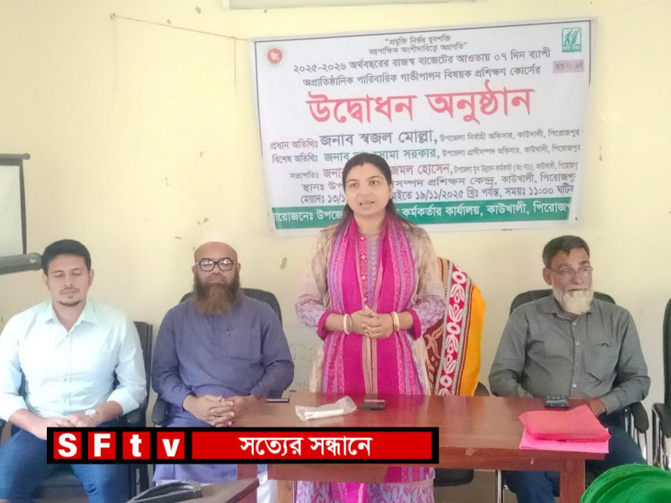 মোঃ নুরুজ্জামান খোকন : পিরোজপুর জেলাধীন কাউখালী উপজেলা যুব উন্নয়ন অধিদপ্তরের আয়োজনে,৭দিন ব্যাপি “অপ্রাতিষ্ঠানিক পারিবারিক গাভী পালন” (৪র্থ ব্যাচ) বিষয়ক প্রশিক্ষণ কোর্সের শুভ উদ্বোধন করা হয়। বৃহস্পতিবার(১৩ নভেম্বর) সকাল ১১ঘটিকার সময়, উপজেলার ২নং আমরাজুড়ী ইউনিয়নে অবস্থিত,উপজেলা প্রাণিসম্পদ কার্যালয়ের সভা কক্ষে,উক্ত প্রশিক্ষণের আয়োজন করা হয়। প্রশিক্ষণটি যুব ও ক্রীড়া মন্ত্রণালয়ের অধীনে ২০২৫-২৬ অর্থবছরের রাজস্ব বাজেটের আওতায় বিভিন্ন ট্রেডে প্রশিক্ষণের ধারাবাহিকতায় বুধবার আয়োজিত প্রশিক্ষণে,উপজেলা যুব উন্নয়ন কর্মকর্তা, সৈয়দ আজমল হোসেন এর সভাপতিত্বে, প্রধান অতিথি হিসেবে উপস্থিত ছিলেন,উপজেলা নির্বাহী কর্মকর্তা স্বজল মোল্লা। বিশেষ অতিথি হিসেবে উপস্থিত ছিলেন,উপজেলা প্রাণিসম্পদ কর্মকর্তা ডা:সোমা সরকার। উপজেলা ভেটেনারি সার্জন ডা: মোঃ মিনহাজুল ইসলাম। সাংবাদিক মোঃ নুরুজ্জামান খোকন। মোঃ মজিবুর রহমান সহকারী যুবউন্নয়ন কর্মকর্তা। মোঃ মতিয়ার রহমান অফিস সহকারী কাম কম্পিউটার যুব উন্নয়ন কাউখালী। প্রশিক্ষণটি ১৩ নভেম্বর থেকে ১৯ নভেম্বর পর্যন্ত ৭দিন চলমান থাকবে। একটি প্রশিক্ষণ ট্রেডে মোট ৩০ জন ১৮-৩৫ বছর যুবক ও যুবনারীর অংশগ্রহণ করেন। প্রশিক্ষণের শুরুতে শিক্ষার্থীদের মাঝে খাতা ও কলম প্রদান করা হয়। এছাড়াও প্রশিক্ষণ শেষে যাতায়াত সন্মানী স্বরূপ প্রতিদিন ১০০ টাকা করে এবং সর্বশেষে একটি সনদ পত্র প্রদান করা হবে। যাতে করে পরবর্তীতে প্রশিক্ষনার্থী যুব উন্নয়ন অধিদপ্তর কর্তৃক স্বল্প হারে ঋণ গ্রহণ করে স্বাবলম্বী হতে পারবে। প্রধান অতিথি উদ্বোধনী বক্তব্যে বলেন,যুব ও ক্রীড়া মন্ত্রণালয়ের অধীনে সারা বাংলাদেশে ২লক্ষ ৬০ হাজার কর্মজীবিকে ২০২৫-২৬ অর্থবছরে বিভিন্ন ট্রেডে প্রশিক্ষণ দেওয়ার উদ্যোগ গ্রহণ করা হয়েছে। তিনি উপস্থিত সকলকে পারিবারিক এবং আর্থিক স্বাবলম্বী হতে প্রশিক্ষণটি মনোযোগ সহকারে শেষ করার অনুরোধ জানান। এ সময় বক্তারা আরো বলেন,গরু পালন ও মোটাতাজাকরণে কোন প্রকার ক্ষতিকারক ঔষধ ও খাবার ব্যাবহার না করা। খামারী উদ্যোক্তার যেকোনো সমস্যা সমাধানে প্রাণিসম্পদ কর্মকর্তাদের সাথে যোগাযোগ করার অনুরোধ জানান।