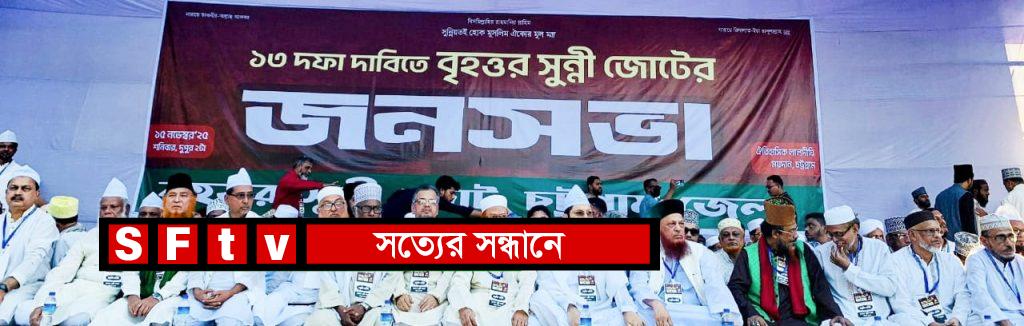 জনসভায় বৃহত্তর সুন্নীজোটের অন্যতম শীর্ষনেতা বাংলাদেশ সুপ্রিম পার্টি-বিএসপির কেন্দ্রীয় চেয়ারম্যান পীরে তরিকত মাওলানা সৈয়দ সাইফুদ্দীন আহমদ আল হাসানী বলেন, বাংলাদেশের মানুষ আজ ঘরে বাইরে কোথাও নিরাপদ নয়। গত ১৫ মাসে সারা দেশে মব সৃষ্টি করে নিরীহ মানুষকে পিটিয়ে হত্যা, শিক্ষা প্রতিষ্ঠানে শিক্ষক হেনস্তা, মাজারে হামলা, অগ্নিসংযোগ ও লুটপাটসহ বহু ঘটনা ঘটেছে। বিভিন্ন স্থানে মসজিদে হামলা, জোর করে ইমাম খতিবদের মসজিদ থেকে বের করে দেওয়া, কবর থেকে লাশ উঠিয়ে জ্বালিয়ে ফেলা এবং কবরস্থানে অগ্নিসংযোগের মতো অমানবিক ঘটনাও ঘটেছে। এমনকি বিচারালয়ের বিচারকরাও আজ নিরাপদ নয়। সরকার ও সেনাবাহিনী ‘মব ভায়োলেন্স বরদাশত না করার ঘোষণা দিলেও বাস্তবে উদাসীনতা স্পষ্ট। তিনি বলেন সুন্নী ছাত্র জনতা কারো প্রতিপক্ষ নয়। এদেশে সুফীবাদী জনতাই সংখ্যাগরিষ্ঠ। আমরা শান্তিপূর্ণ সহাবস্থানে বিশ্বাসী। কিন্তু গায়ে পড়ে ঝগড়া বাধালে আমরা আর চুপ থাকব না।