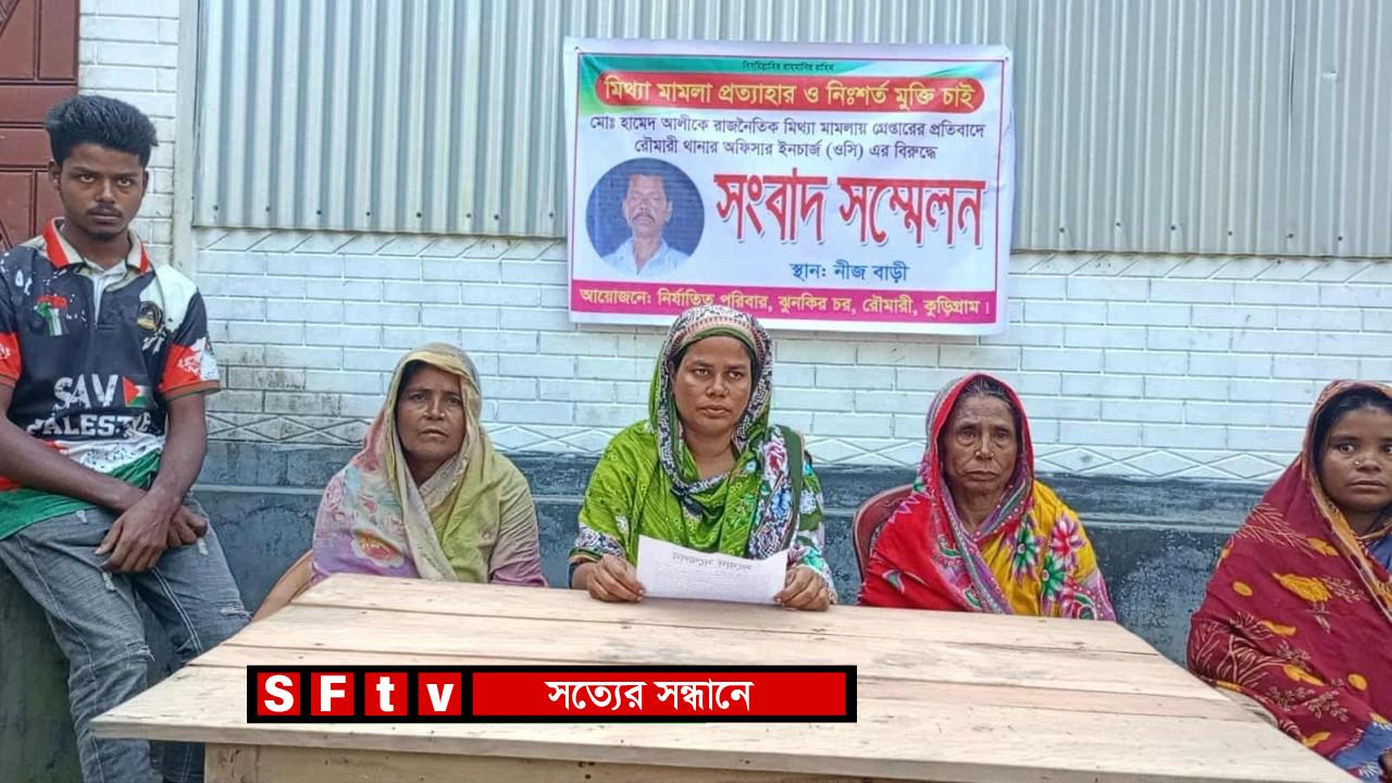 কুড়িগ্রামের রৌমারীতে জমি সংক্রান্ত মামলায় ঘায়েল করতে না পেরে হামেদ আলী নামের এক দিনমজুরকে রাজনৈতিক মিথ্যা মামলায় গ্রেপ্তার করার অভিযোগ উঠেছে রৌমারী থানা পুলিশের বিরুদ্ধে। পুলিশের এমন ভুমিকায় এলাকায় ব্যাপক আলোচনা সমালোচনার ঝড় ওঠেছে। এনিয়ে সোমবার দুপরের দিকে কুড়িগ্রামের রৌমারী উপজেলার বন্দবেড় ইউনিয়নের ঝুনকিরচর গ্রামে নিজ বাড়িতে এক সংবাদ সম্মেলন করেছেন নির্যাতিত পরিবার। সংবাদ সম্মেলনে গ্রেপ্তারকৃত আসামীর বোন জমিলা খাতুন তার বক্তব্যে বলেন, আমাদের পৈত্রিক সম্পত্তি নিয়ে আমার ভাই মো. হামেদ আলীর সাথে সাবেক উপজেলা পরিষদ চেয়ারম্যান ও আরএসডিএ’র নির্বাহী পরিচালক ইমান আলীর দীর্ঘদিন ধরে বিরোধ চলে আসছিল। এনিয়ে আমাদের পক্ষে কুড়িগ্রাম কোর্টে পৃথক দুটি মামলাও চলমান রয়েছে। এ মামলা করায় আরো ক্ষিপ্ত ওঠেন প্রতিপক্ষ ইমান আলী। এর আগেও এ জমিটি নিয়ে ইমান আলীর পক্ষের লোকজন আমাদের ওপর হামলা করে। এতে আমাদের লোকজন আহত হয়ে রৌমারী উপজেলা স্বাস্থ্য কমপ্লেক্সে ভর্তি হয়। পরে থানায় মামলা দিতে গেলে রৌমারী থানার অফিসার ইনচার্জ (ওসি) সেলিম মালিক ও এসআই আনারুল সরকার মামলা না নিয়ে মিমাংসার জন্য চাপ প্রয়োগ করে। অবশেষে ইমান আলীর জামাই ও খেদাইমারী নিম্ন মাধ্যমিক বিদ্যায়ের বিতর্কিত প্রধান শিক্ষক আব্দুল ওহাব কতর্ৃক দায়েরকৃত রাজনৈতিক ও চঁাদাবাজির মামলার অজ্ঞাত আসামী হিসেবে আমার ভাই হামেদ আলীকে গত ১৪ নভেম্বর গভীর রাতে ঘুম থেকে ডেকে জেগে তুলেন একদল পুলিশ। আমরা কারণ জানতে চাইলে পরে জানানো হবে বলে জানান। পরেরদিন থানায় গিয়ে জানতে পারলাম আমার ভাইকে রাজনৈতিক ও মিথ্যা চঁাদাবাজি মামলায় গ্রেপ্তার করে কুড়িগ্রাম জেল হাজতে প্রেরণ করা হয়েছে। আসলে আমার ভাই প্রকৃত একজন কৃষক। তিনি কোন রাজনীতির সাথে জড়িত ছিল না।