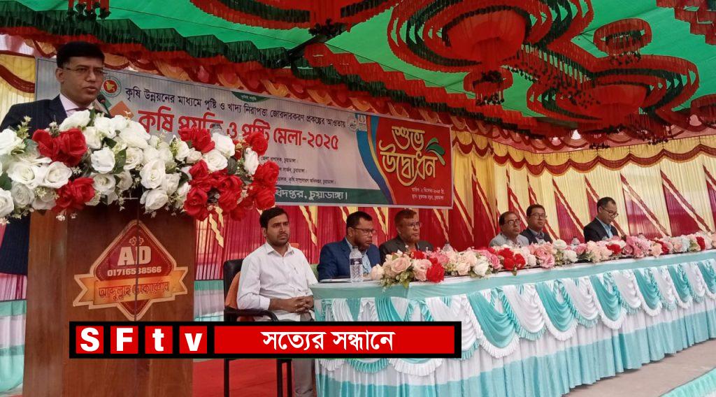 চুয়াডাঙ্গা সরকারি কলেজের মুক্তমঞ্চ প্রাঙ্গণে মঙ্গলবার জেলা প্রশাসক মোহাম্মদ কামাল হোসেনের উদ্বোধনের মধ্য দিয়ে শুরু হয়েছে তিন দিনব্যাপী কৃষি প্রযুক্তি ও পুষ্টি মেলা–২০২৫। কৃষি উন্নয়ন প্রকল্পের আওতায় আয়োজিত এ মেলা চলবে আগামী ৪ ডিসেম্বর পর্যন্ত। অনুষ্ঠানে সভাপতিত্ব করেন কৃষি সম্প্রসারণ অধিদপ্তরের উপ-পরিচালক মাসুদুর রহমান সরকার। প্রধান অতিথি জেলা প্রশাসক তাঁর বক্তব্যে সঠিক পুষ্টিকর খাদ্য গ্রহণ ও সার–কিটনাশকের সঠিক ব্যবহার নিশ্চিত করার ওপর গুরুত্ব আরোপ করেন। তিনি বলেন, অতিরিক্ত প্রক্রিয়াজাত খাবার ও কৃষিতে অতিরিক্ত রাসায়নিক ব্যবহারে স্বাস্থ্যঝুঁকি বাড়ে।