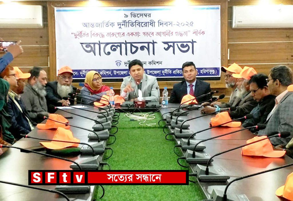 দুর্নীতির বিরুদ্ধে তারুণ্যের একতা”গড়বে আগামীর শুদ্ধতা শীর্ষক প্রতিপাদ্যকে সামনে রেখে ঝিনাইদহের হরিণাকুণ্ডু উপজেলাতে আন্তর্জাতিক দুর্নীতিবিরোধী দিবস পালিত হয়েছে। মঙ্গলবার (০৯ ডিসেম্বর) সকাল সাড়ে ৯টায় বর্ণাঢ্য র্যালী ও আলোচনা সভা অনুষ্ঠিত হয়। মান্দিয়া আইডিয়াল কলেজের অধ্যক্ষ রবজেল হোসেনের সঞ্চালনায়, দুর্নীতি দমন কমিশন, উপজেলা প্রশাসন ও উপজেলা দুর্নীতি প্রতিরোধ কমিটির আয়োজনে,সালেহা বেগম মহিলা ডিগ্রি কলেজের অধ্যক্ষ মোঃ মুক্তার আলী এর সভাপতিত্বে প্রধান অতিথি হিসেবে উপস্থিতি থেকে বক্তব্য রাখেন নবাগত হরিণাকুণ্ডু উপজেলা নির্বাহী অফিসার মোহাম্মদ দিদারুল আলম। বিশেষ অতিথি হিসেবে উপস্থিতি থেকে বক্তব্য রাখেন,সহকারী কমিশনার (ভুমি) ঈশিতা আক্তার, উপজেলা স্বাস্থ্য ও পরিবার পরিকল্পনা (টি,এইচ,ও)কর্মকর্তা ডাঃ আলমগির হোসেন, উপজেলা প্রাণী সম্পদ কর্মকর্তা ডাঃ উজ্জ্বল কুমার কুণ্ডু, শিশু কলি মাধ্যমিক বিদ্যালয়ের প্রধান শিক্ষক নিয়ামত আলী, আন্দুলিয়া মাধ্যমিক বিদ্যালয়ের প্রধান শিক্ষক মাসদুল হক টিটো সহ আরও অনেকেই। এছাড়াও আন্তর্জাতিক দুর্নীতিবিরোধী দিবসে বিভিন্ন সরকারি কর্মকর্তা,বিশিষ্ট ব্যাক্তিবর্গ, প্রিন্ট ও ইলেকট্রনিক্স মিডিয়ার সাংবাদিকবৃন্দ সহ নানা শ্রেণী পেশার মানুষ অংশগ্রহণ করেন।
