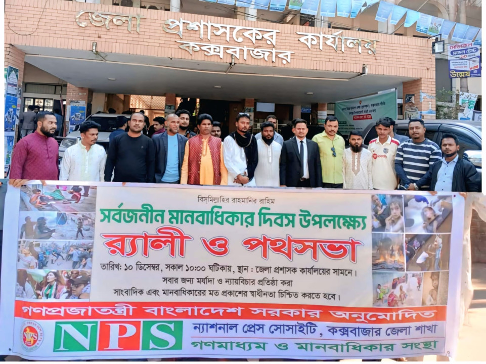 বক্তারা আরও বলেন, মানবাধিকার রক্ষার জন্য সমাজের প্রতিটি মানুষকে সচেতন হতে হবে। রাষ্ট্র ও প্রশাসনকে মানবাধিকার রক্ষায় আরও সক্রিয় ভূমিকা রাখতে হবে। কর্মসূচিটি আয়োজন করে গণপ্রজাতন্ত্রী বাংলাদেশ সরকার অনুমোদিত ন্যাশনাল প্রেস সোসাইটি, কক্সবাজার জেলা শাখা। সংগঠনটি জানান, মানবাধিকার সুরক্ষা ও গণমাধ্যমের স্বাধীনতা নিশ্চিত করতে তারা ভবিষ্যতেও এমন কর্মসূচি অব্যাহত রাখবেন