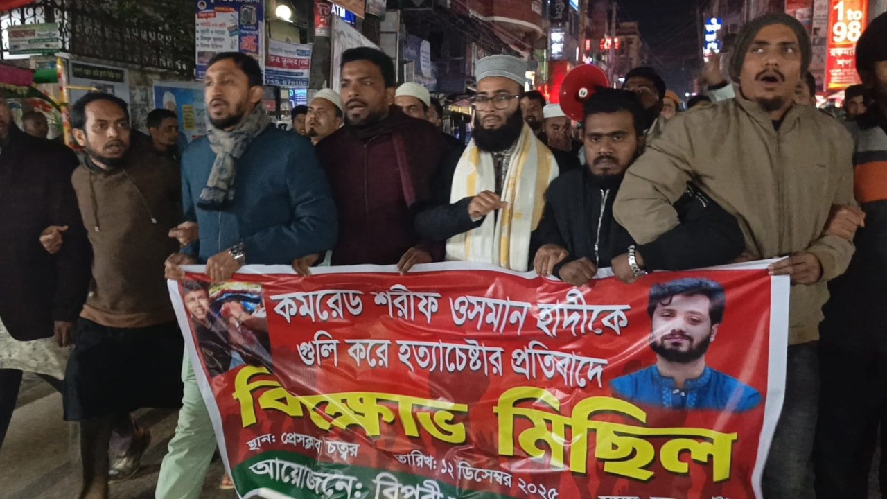 ভোলায় ওসমান হাদীর ওপর সন্ত্রাসী হামলার প্রতিবাদে গণবিক্ষোভ ও সমাবেশ