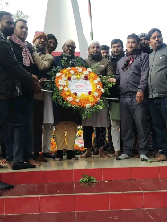চাঁপাইনবাবগঞ্জের ভোলাহাট উপজেলায় জাতীয়তাবাদী দল বিএনপির আয়োজনে (১৬ ডিসেম্বর) মহান বিজয় দিবস পালিত হয়েছে। আজ মহান বিজয় দিবস উপলক্ষে জাতির শ্রেষ্ঠ সন্তান বীর শহীদদের স্মরণে পুষ্পস্তবক অর্পণের মাধ্যমে গভীর শ্রদ্ধা নিবেদন করা হয়। মহান মুক্তিযুদ্ধে আত্মদানকারী সকল শহীদের প্রতি রইলো বিনম্র শ্রদ্ধা ও কৃতজ্ঞতা। তাঁদের ত্যাগ ও রক্তের বিনিময়ে অর্জিত এই বিজয় আমাদেরকে সত্য, ন্যায় ও গণতন্ত্রের পথে অবিচল থাকার প্রেরণা জোগায়। মহান বিজয় দিবস অমর হোক। শহীদদের আত্মা শান্তিতে থাকুক। এসময় উপস্থিত ছিলেন ভোলাহাট উপজেলা বিএনপির সম্মানিত সভাপতি মোহাঃ ইয়াজদানী আলিম আল রাজী (জর্জ) সাধারণ সম্পাদক জনাব আব্দুল কাদির চেয়ারম্যান সাংগঠনিক সম্পাদক জনাব আব্দুল করিম মাস্টার। দপ্তর সম্পাদক জনাব আব্দুর রাকিব ও ৪ ইউনিয়নের সভাপতি সেক্রেটারি বিএনপির অঙ্গ সংগঠন নেতৃবৃন্দ