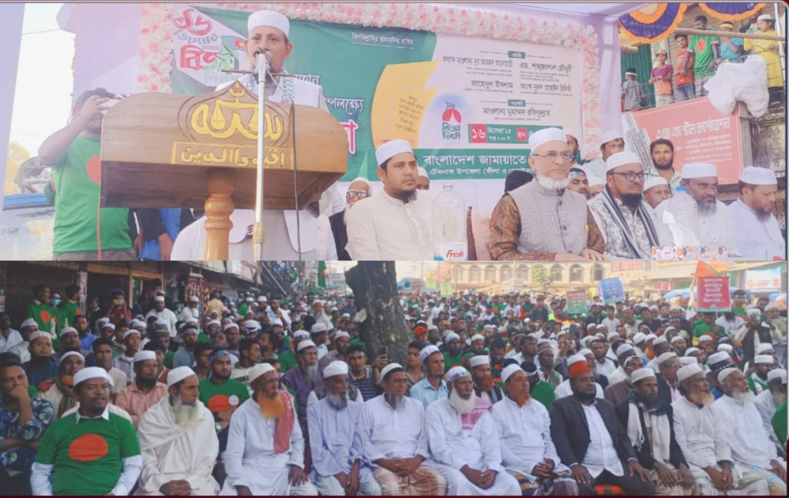 বাংলাদেশ জামায়াতে ইসলামী হ্নীলা ও হোয়াইক্যংয়ের যৌথ উদ্যোগে স্বাধীনতার ৫৪ তম মহান বিজয় দিবস উদযাপন উপলক্ষে র্যালীত্তোর পথ সভা অনুষ্ঠিত হয়েছে। ১৬ ডিসেম্বর ( মঙ্গলবার) দুপুর ২ টা থেকে র্যালীটি হ্নীলা ও হোয়াইক্যংয়ের বিভিন্ন প্রান্ত থেকে শুরু হয়ে হ্নীলা বাসস্টেশনের ছৈয়দুল্লাহ মার্কেট চত্বরে এসে পথ সভায় মিলিত হয়।কানায় কানায় পরিপূর্ণ পথসভা একপর্যায়ে জন সমাবেশে পরিণতহয়। হ্নীলা ইউনিয়ন জামায়াতের আমীর মাও: গিয়াসউদ্দিন নিজামীর সঞ্চালনায় ও টেকনাফ উপজেলা জামায়াতে ইসলামির আমীর মাও: রফিকুল্লাহর সভাপতিত্বে অনুষ্ঠিত পথ সভায় সভায় প্রধান অতিথির বক্তব্যে রাখেন কক্সবাজার জেলা জামায়াতের আমীর ও উখিয়া - টেকনাফ সংসদীয় আসনের বাংলাদেশ জামায়াতে ইসলামীর মনোনীত প্রার্থী অধ্যক্ষ মাও: নুর আহমদ আনোয়ারী। প্রধান বক্তার বক্তব্য রাখেন কক্সবাজার জেলাবারের সাবেক সভাপতি ও জেলা জামায়াতের কর্মপরিষদ সদস্য আইন বিষয়ক সম্পাদক,একে এম শাহজালাল চৌধুরী, বিশেষ অতিথির বক্তব্যে রাখেন কক্সবাজার জেলা জামায়াতের সমাজকল্যাণ সম্পাদক অধ্যক্ষ নুরুল হোছাইন ছিদ্দিকী সহ জেলা ও উপজেলা জামায়াতের নেতৃবৃন্দ ছিলেন। সভায় প্রধান অতিথির বক্তব্যে জেলা জামায়াত আমীর ও উখিয়া টেকনাফ সংসদীয় আসনের জামায়াত মনোনীত প্রার্থী অধ্যক্ষ মাও: নুর আহমদ আনোয়ারী বলেছেন বাংলাদেশ স্বাধীনতার ৫৪ বছরে বার বার বিজয় দিবস আসে আর যায় কিন্ত বাংলাদেশের ১৮ কোটি মানুষ এখনো বিজয়ের প্রকৃত স্বাদ পায়নি,সরকার আসে সরকার যায় বৈষম্য, দুর্নীতি, খুন রাহাজানি,চাঁদাবাজ মুক্ত স্বাধীন দেশের প্রকৃত সন্ধান মানুষ এখনো পায়নি,এছাড়া তিনি আরো বলেছেন যেই সরকার ক্ষমতায় যায়না কেন বাংলাদেশের স্বাধীনতা ও বিজয়ের প্রকৃত স্বাদ আধিপত্যবাদীদের যাতাকলে বন্ধি ছিল। এখনো সেই আধিপত্যবাদীদের কথায় এদেশ পরিচালনার স্বপ্ন দেখছে একটিদল।২৪ এর গণ অভ্যুথান হয়েছিল ফ্যাসিবাদ,বৈষম্য ও দুর্নীতির বিরুদ্ধে, কেউ এইদেশে নতুন করে ফ্যাসিবাদ কায়েমের স্বপ্ন দেখে থাকে তাহলে এটা ভুল হবে।বাংলাদেশ জামায়াতে ইসলামীর একটা কর্মী ও বেঁচে থাকতে এটা সফল হতে দেবনা ইনশাল্লাহ। আপনাদের দোয়া ও ভোটে বাংলাদেশ জামায়াতে ইসলামীর হয়ে আমি নির্বাচিত হলে মানুষের মৌলিখ অধিকার ফিরিয়ে দেব,সীমান্ত বাণিজ্য ওপেন করে দেয়া হবে, হ্নীলা ও হোয়াইক্যংয়ের করিডোর খুলে দেয়া হবে,শাহপরীর দ্বীপের করিডোর খুলে দেয়া হবে,নাফনদীতে মাছ শিকার উম্নোক্ত করে দেয়া হবে,টেকনাফ থেকে সেন্টমার্টিন পর্যটন যাতায়ত খুলে দেয়া হবে, বিদেশ থেকে লবণ আমদানী বন্ধ করে দিয়ে দেশীয় লবণশিল্পকে মূল্যায়ন করা হবে,চাকরীর জন্য এলাকার মানুষদের আন্দোলন করতে হবেনা, ম