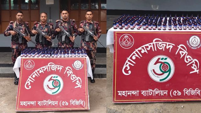 চাঁপাইনবাবগঞ্জ জেলার শিবগঞ্জ সীমান্তে মাদক চোরাকারবারীরা বিজিবির নজর এড়াতে নতুন নতুন কৌশল অবলম্বন করলেও মহানন্দা ব্যাটালিয়ন (৫৯ বিজিবি)-এর তৎপরতায় তাদের অপতৎপরতা প্রতিহত হচ্ছে। গত ১৯ ডিসেম্বর গভীর রাত থেকে ২০ ডিসেম্বর ২০২৫ তারিখ সকাল পর্যন্ত ৫৯ বিজিবির অধীন সোনামসজিদ ও তেলকুপি বিওপি তাদের নিজ নিজ দায়িত্বপূর্ণ এলাকায় সীমান্তের শূন্য রেখা হতে আনুমানিক ৩০ থেকে ৫০ গজের মধ্যে পৃথক অভিযান পরিচালনা করে। অভিযানে প্লাস্টিকের বস্তায় অভিনব কায়দায় মোড়কজাত অবস্থায় ফেন্সিডিলের বিকল্প হিসেবে ব্যবহৃত ১৩৮ বোতল ভারতীয় CHOCO+ সিরাপ এবং ৪৮ বোতল ভারতীয় নেশাজাতীয় Eskuf DX সিরাপসহ মোট ১৮৬ বোতল নেশাজাতীয় সিরাপ জব্দ করা হয়।