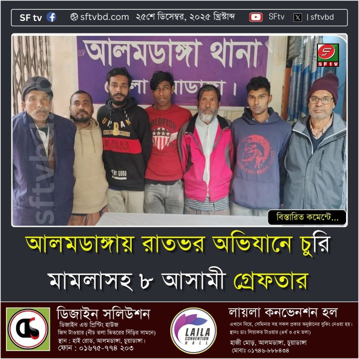 আলমডাঙ্গায় রাতভর অভিযানে চুরি মামলাসহ ৮ আসামী গ্রেফতার