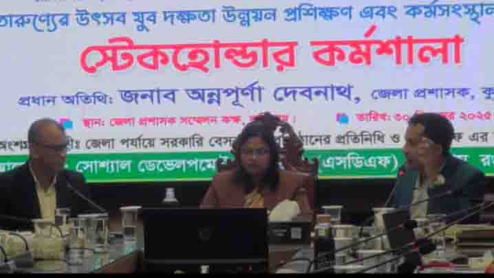 কুড়িগ্রামে গ্রামীণ জনপদ ও মানুষের জীবনমান উন্নয়নের লক্ষ্যে দারিদ্র্য বিমোচন এবং পিছিয়ে পড়া জনগোষ্ঠীকে এগিয়ে নিতে সোশ্যাল ডেভেলপমেন্ট ফাউন্ডেশন (এসডিএফ)-এর উদ্যোগে স্টেকহোল্ডার কর্মশালা অনুষ্ঠিত হয়েছে। কর্মশালায় উপজেলা পর্যায়ের সরকারি ও বেসরকারি বিভিন্ন প্রতিষ্ঠানের প্রতিনিধিরা অংশগ্রহণ করেন।