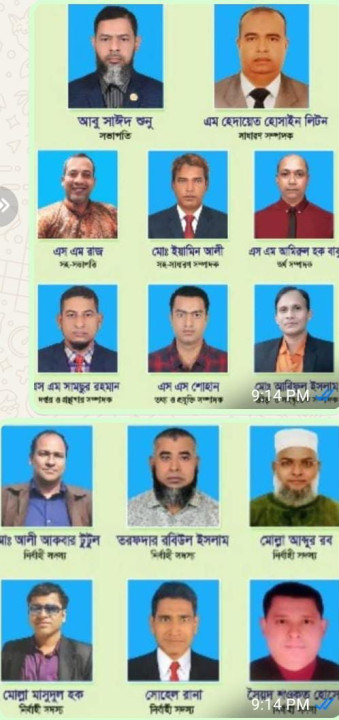 সহ সভাপতি এস. এম. রাজ (দৈনিক ঢাকার ডাক), সহ সাধারণ সম্পাদক ইয়ামিন আলী (যমুনা টিভি), অর্থ সম্পাদক আমিরুল ইসলাম বাবু (এটিএন বাংলা), দপ্তর সম্পাদক এস. এম. সামছুর রহমান (আর টিভি), তথ্য ও প্রযুক্তি সম্পাদক এস. এস. সোহান (স্টার নিউজ টিভি), ক্রীড়া ও সাংস্কৃতিক সম্পাদক আরিফুল ইসলাম (চ্যানেল ২৪)।