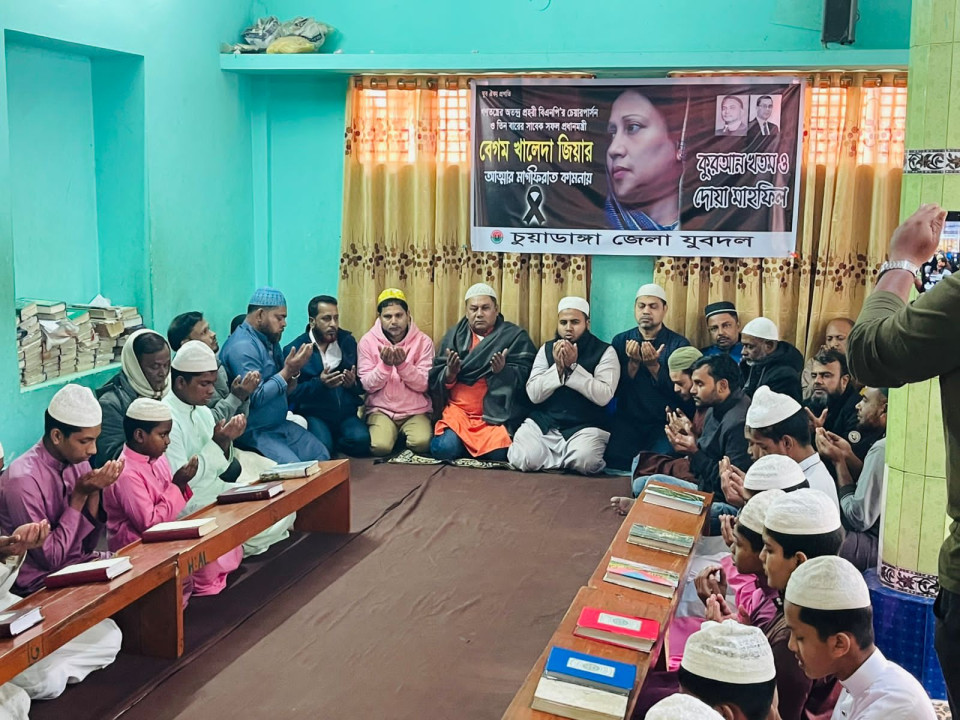 চুয়াডাঙ্গা জেলা যুবদলের আয়োজনে সাবেক প্রধানমন্ত্রী ও বিএনপি চেয়ারপারসন বেগম খালেদা জিয়ার রুহের মাগফিরাত কামনায় কুরআন খতম ও দোয়া মাহফিল অনুষ্ঠিত হয়েছে।