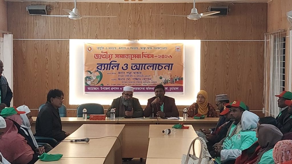 প্রযুক্তি ও মমতায়, কল্যাণ ও সমতায়, আস্থা আজ সমাজসেবায়”—এই প্রতিপাদ্যকে সামনে রেখে আলমডাঙ্গা উপজেলায় যথাযোগ্য মর্যাদায় পালিত হয়েছে জাতীয় সমাজসেবা দিবস–২০২৬। দিবসটি উপলক্ষে শনিবার ০৩-০১-২০২৬ ইং সকালে আলমডাঙ্গা উপজেলা সমাজসেবা কার্যালয়ের উদ্যোগে একটি বর্ণাঢ্য র্যালি অনুষ্ঠিত হয়। র্যালিটি উপজেলা প্রশাসকের কার্যালয় চত্বর থেকে শুরু হয়ে গুরুত্বপূর্ণ সড়ক প্রদক্ষিণ করে একই স্থানে এসে শেষ হয়। র্যালি শেষে উপজেলা প্রশাসকের কার্যালয়ে এক আলোচনা সভা অনুষ্ঠিত হয়। এতে সভাপতিত্ব করেন আলমডাঙ্গা উপজেলা সমাজসেবা অফিসার মোঃ সাজ্জাদ হোসেন। অনুষ্ঠানে প্রধান অতিথি হিসেবে উপস্থিত ছিলেন আলমডাঙ্গা উপজেলা নির্বাহী অফিসার পান্না আক্তার। বিশেষ অতিথি হিসেবে বক্তব্য রাখেন উপজেলা মাধ্যমিক শিক্ষা অফিসার মোঃ জিয়াউল হক। এছাড়াও বিভিন্ন সমাজসেবক, এনজিও কর্মকর্তা, সরকারি দপ্তরের প্রতিনিধিবৃন্দ ও সমাজসেবা কার্যক্রমের সাথে সংশ্লিষ্ট ব্যক্তিরা অনুষ্ঠানে অংশগ্রহণ করেন। স্বাগতবক্তব্যে অনুষ্ঠানের সভাপতি মো: সাজ্জাদ হোসেন আলমডাঙ্গা সমাজসেবা অফিস কতৃক কর্মকান্ডের বিভিন্ন চিত্র সকলের মাঝে তুলে ধরেন। সেখানে তিনি উল্লেখ করেন, বর্তমানে তারা জনসেবার জন্যে বিধবা ভাতা, প্রতিবন্ধি ভাতা সহ প্রায় ১৭ টি কার্যক্রমের মাধ্যমে ৩৯৩৫৮ জন কে সেবা প্রদান করে যাচ্ছে। সুবিধা নেওয়ার জন্য আরো ১২০০০ জন আবেদন করে রেখেছেন যা পরবর্তিতে বাজেট আসলে সেবা প্রদান করার আশ্বাস দেন। অন্যান্য বক্তারা তাদের বক্তব্যে বলেন, সমাজসেবার মাধ্যমে পিছিয়ে পড়া জনগোষ্ঠীর জীবনমান উন্নয়ন সম্ভব। আধুনিক প্রযুক্তির ব্যবহার ও মানবিক মূল্যবোধের সমন্বয়ে একটি বৈষম্যহীন ও কল্যাণমুখী সমাজ গঠনে সমাজসেবা বিভাগের ভূমিকা অত্যন্ত গুরুত্বপূর্ণ। তারা সমাজসেবামূলক কার্যক্রমে সকলের সম্মিলিত অংশগ্রহণের আহ্বান জানান।