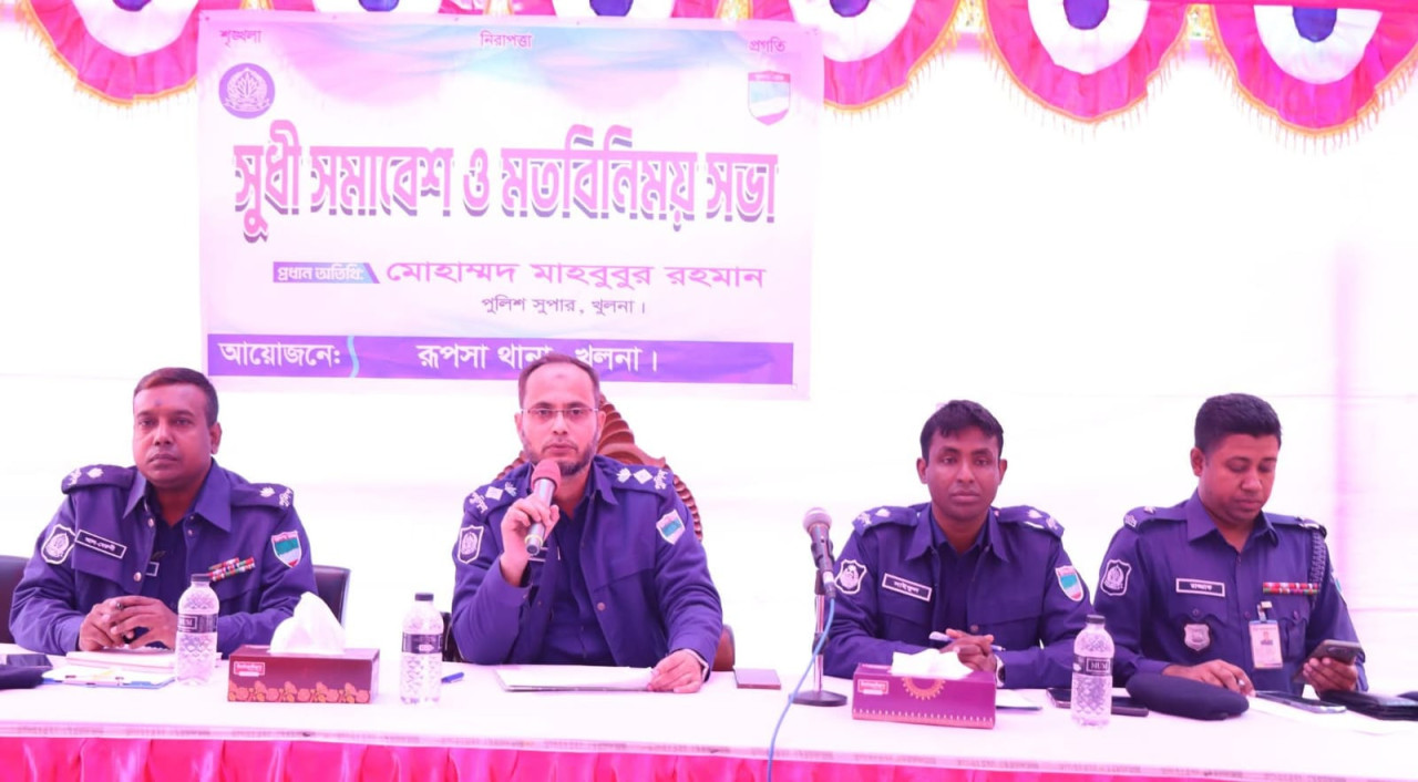 শনিবার (৩ জানুয়ারি) রূপসা থানা পুলিশের আয়োজনে থানা চত্বরে অনুষ্ঠিত সুধী সমাবেশ ও মতবিনিময় সভায় প্রধান অতিথির বক্তব্যে তিনি এসব কথা বলেন। সভায় ধর্ম-বর্ণ নির্বিশেষে বিভিন্ন শ্রেণি ও পেশার মানুষ অংশগ্রহণ করেন। এ সময় থানা এলাকার বাসিন্দারা তাদের দৈনন্দিন আইনশৃঙ্খলা সংক্রান্ত নানা সমস্যা পুলিশ সুপারের কাছে তুলে ধরেন। তিনি উপস্থিত সকলের বক্তব্য মনোযোগ সহকারে শোনেন এবং সমস্যাগুলো সমাধানে প্রয়োজনীয় পদক্ষেপ গ্রহণের আশ্বাস প্রদান করেন। একই সঙ্গে আইনশৃঙ্খলা রক্ষা ও সমাজে শান্তি বজায় রাখতে সকলের সার্বিক সহযোগিতা কামনা করেন।