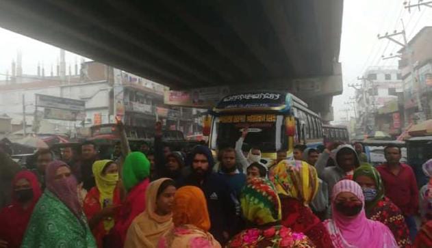 গাজীপুর জেলার সখিপুরে অবস্থিত মাহমুদ ডেনিম ফ্যাক্টরি হঠাৎ করে মাসিক বেতন পরিশোধ না করেই বন্ধ ঘোষণা করায় শতাধিক শ্রমিক সড়ক অবরোধ করে বিক্ষোভ মিছিল করেছেন। রবিবার সকালে এ ঘটনা ঘটে। প্রত্যক্ষদর্শীরা জানান, সকালে কাজে যোগ দিতে এসে শ্রমিকরা জানতে পারেন—কারখানা অনির্দিষ্টকালের জন্য বন্ধ ঘোষণা করা হয়েছে। তবে বন্ধ ঘোষণার আগে শ্রমিকদের মাসিক বেতন পরিশোধ করা হয়নি। এতে ক্ষুব্ধ হয়ে শ্রমিকরা কারখানার সামনে অবস্থান নিয়ে বিক্ষোভ শুরু করেন এবং একপর্যায়ে সখিপুর-সংলগ্ন গুরুত্বপূর্ণ সড়ক অবরোধ করেন। বিক্ষোভ চলাকালে শ্রমিকরা বকেয়া বেতন দ্রুত পরিশোধ, কারখানা পুনরায় চালু ও শ্রমিকদের কর্মসংস্থান নিশ্চিতের দাবি জানান। অবরোধের ফলে ওই সড়কে যান চলাচল ব্যাহত হয়, সৃষ্টি হয় তীব্র যানজট। ভোগান্তিতে পড়েন সাধারণ যাত্রী ও পথচারীরা। শ্রমিকদের অভিযোগ, পূর্ব কোনো নোটিশ বা আলোচনা ছাড়াই মালিকপক্ষ কারখানা বন্ধ ঘোষণা করেছে, যা শ্রম আইন পরিপন্থী। তারা জানান, বেতন না পেয়ে অনেক শ্রমিক পরিবার নিয়ে চরম অনিশ্চয়তায় পড়েছেন।খবর পেয়ে ঘটনাস্থলে আইনশৃঙ্খলা বাহিনীর সদস্যরা পৌঁছে শ্রমিকদের সঙ্গে আলোচনা করেন এবং পরিস্থিতি নিয়ন্ত্রণে আনার চেষ্টা করেন। এ বিষয়ে কারখানা কর্তৃপক্ষের পক্ষ থেকে তাৎক্ষণিক কোনো বক্তব্য পাওয়া যায়নি। শ্রমিক নেতারা হুঁশিয়ারি দিয়ে বলেন, দ্রুত বকেয়া বেতন পরিশোধ ও সমস্যার সমাধান না হলে আরও কঠোর কর্মসূচি দেওয়া