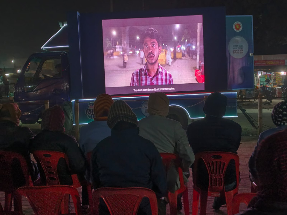 জীবননগরে ভ্রাম্যমাণ ‘ভোটের গাড়ি’: চলচ্চিত্র প্রদর্শনীতে উঠে এল জুলাই অভ্যুত্থানের বীরত্বগাথা!