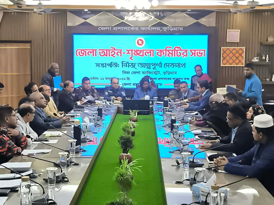 ত্রয়োদশ জাতীয় সংসদ নির্বাচনকে সামনে রেখে কুড়িগ্রামে জেলা আইনশৃঙ্খলা কমিটির সভা অনুষ্ঠিত হয়েছে। জেলা প্রশাসকের সম্মেলন কক্ষে আয়োজিত এ সভায় সভাপতিত্ব করেন জেলা প্রশাসক অন্নপূর্ণা দেবনাথ। সভায় বক্তব্য রাখেন পুলিশ সুপার খন্দকার ফজলে রাব্বি, বিজিবির অধিনায়ক লেফটেন্যান্ট কর্নেল মাহবুব উল হক, কুড়িগ্রাম সেনাবাহিনীর ক্যাম্প কমান্ডার মেজর মো. ইনজামামুল আলম ইনজাম, জেলা বিএনপির আহ্বায়ক মোস্তাফিজার রহমান, সিনিয়র যুগ্ম আহ্বায়ক অধ্যাপক শফিকুল ইসলাম বেবু, জেলা জামায়াতের সেক্রেটারি নিজাম উদ্দিন, সাংবাদিক সাইয়েদ বাবুসহ বিভিন্ন রাজনৈতিক দলের নেতৃবৃন্দ ও সংশ্লিষ্ট কর্মকর্তারা। সভায় জেলা প্রশাসক অন্নপূর্ণা দেবনাথ বলেন, ত্রয়োদশ জাতীয় সংসদ নির্বাচন সুষ্ঠু, শান্তিপূর্ণ ও নিরপেক্ষ করতে জেলা প্রশাসন বদ্ধপরিকর। তিনি জানান, কুড়িগ্রাম জেলার চারটি সংসদীয় আসনে মোট ৭০৬টি ভোটকেন্দ্র রয়েছে। এর মধ্যে ৩৫১টি কেন্দ্রকে অধিক গুরুত্বপূর্ণ (ঝুঁকিপূর্ণ) হিসেবে চিহ্নিত করা হয়েছে। চরাঞ্চলের ১৪টি কেন্দ্রে বিদ্যুৎ সংযোগ না থাকলেও জেনারেটরের মাধ্যমে বিদ্যুৎ সরবরাহের ব্যবস্থা নেওয়া হবে বলে তিনি জানান। পাশাপাশি চরাঞ্চলে দুর্বল ইন্টারনেট সংযোগের গতি বাড়াতে সংশ্লিষ্ট দপ্তরকে প্রয়োজনীয় নির্দেশনা দেওয়া হয়েছে। পুলিশ সুপার খন্দকার ফজলে রাব্বি বলেন, আসন্ন জাতীয় সংসদ নির্বাচনে আইনশৃঙ্খলা বাহিনীর পাশাপাশি রাজনৈতিক দলের নেতৃবৃন্দ, সাংবাদিক ও বিভিন্ন পেশাজীবী মানুষের সম্মিলিত সহযোগিতা প্রয়োজন। সবার সহযোগিতায় একটি গ্রহণযোগ্য নির্বাচন আয়োজন সম্ভব হবে বলে তিনি আশাবাদ ব্যক্ত করেন। বিজিবির অধিনায়ক লেফটেন্যান্ট কর্নেল মাহবুব উল হক জানান, সংসদ নির্বাচন উপলক্ষে কুড়িগ্রামের ফুলবাড়ী, নাগেশ্বরী, কুড়িগ্রাম সদর ও উলিপুরসহ পাঁচ উপজেলায় মোট ৪৯০ জন বিজিবি সদস্য আইনশৃঙ্খলা রক্ষায় দায়িত্ব পালন করবেন। এদিকে সেনাবাহিনীর ক্যাম্প কমান্ডার মেজর ইনজামামুল আলম ইনজাম বলেন, জাতীয় সংসদ নির্বাচনে সহায়তার জন্য ৬৫০ জন সেনাবাহিনীর সদস্য মাঠে থাকবে। তিনি আরও জানান, নাশকতাকারীদের একটি তালিকা তাদের হাতে রয়েছে এবং তাদের বিরুদ্ধে প্রয়োজনীয় ব্যবস্থা গ্রহণের প্রক্রিয়া চলমান রয়েছে। জেলা বিএনপির আহবায়ক মোঃ মোস্তাফিজার রহমান বলেন,কুড়িগ্রামে সকল দলের মধ্য ভ্রাতৃত্বপ্রতীম সম্পর্ক বিরাজমান রয়েছে, আশাকরি তা অব্যহত থাকবে। যুগ্ম আহবায়ক অধ্যাপক শফিকুল ইসলাম বেবু বলেন, নির্বাচনে অংশগ্রহণকারীরা শান্তিপূর্ণ ও উৎসবমুখর পরিবেশ বজায় রাখতে সহযোগিতা করবেন।সাংবাদিক সাইয়েদ বাবু বলেন, এই নির্বাচন জাতীর জন্য অত্যন্ত গুরুত্বপূর্ণ তাই নির্বাচন সম