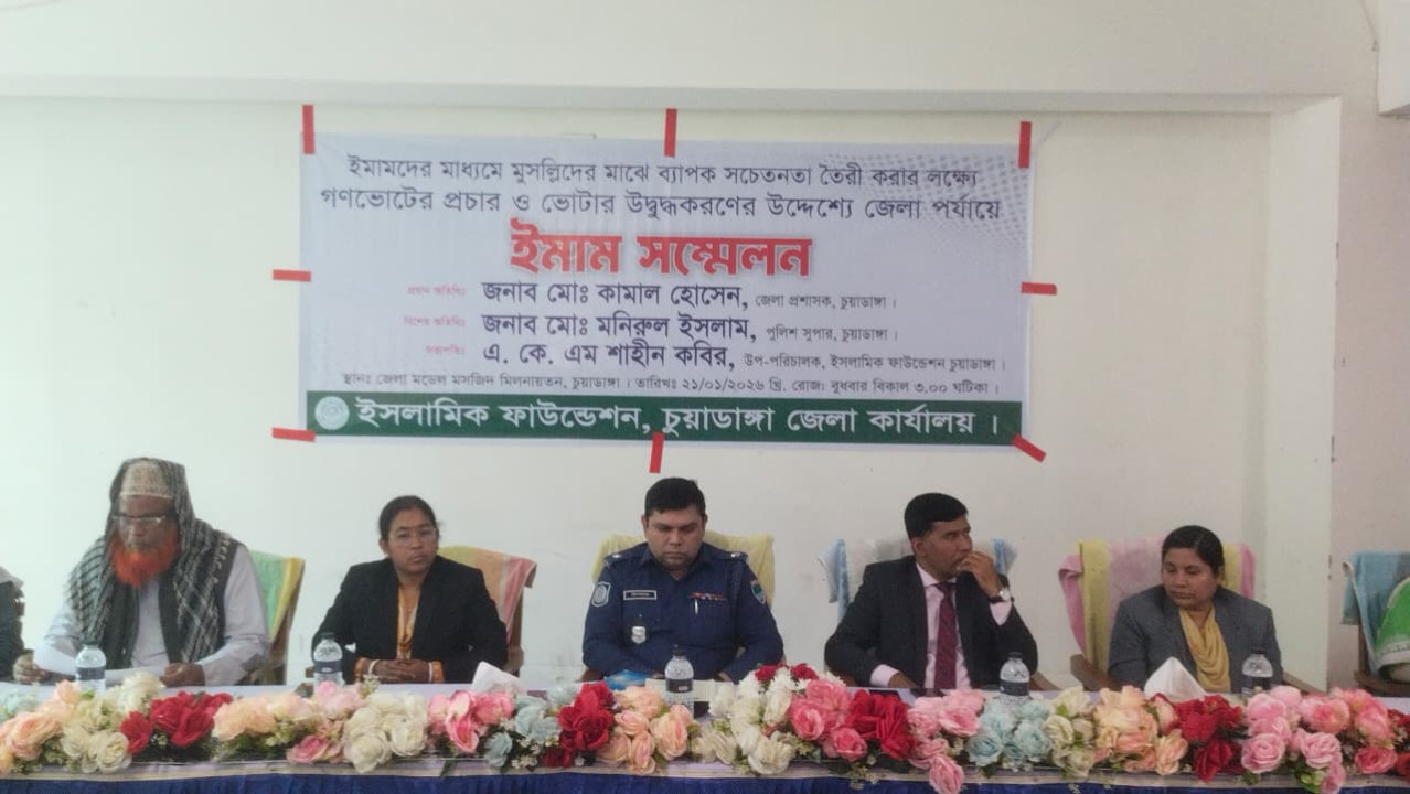 চুয়াডাঙ্গায় জেলা পর্যায়ে ইমাম সম্মেলন অনুষ্ঠিত হয়েছে। ইমামদের মাধ্যমে মুসলিম সমাজে সচেতনতা সৃষ্টি, গণতান্ত্রিক মূল্যবোধ জোরদার, গুজব ও উগ্রবাদ প্রতিরোধ এবং ভোটাধিকারের সঠিক প্রয়োগ নিশ্চিত করতে এ সম্মেলনের আয়োজন করা হয়।