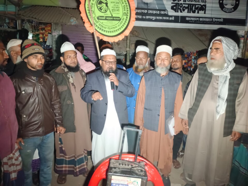 যশোরের কেশবপুরে ইসলামী আন্দোলন বাংলাদেশ মনোনীত হাতপাখা প্রতীকের প্রার্থী গাজী মোঃ শহিদুল ইসলামের নির্বাচনী গণসংযোগ ও পথসভা অনুষ্ঠিত হয়েছে।সোমবার বিকেলে কেশবপুর উপজেলার বিদ্যানন্দন কাঠি ইউনিয়নের তেঘরী বাজারে এবং সন্ধ্যায় বাউশালা বাজারে পৃথক দুটি পথসভা অনুষ্ঠিত হয়। সভায় প্রধান অতিথির বক্তব্য রাখেন সংসদীয় আসন-৯০ যশোর-৬ (কেশবপুর) এর হাতপাখা প্রতীকের প্রার্থী ও যশোর জেলা ইসলামী শ্রমিক আন্দোলনের সাধারণ সম্পাদক গাজী মোঃ শহিদুল ইসলাম।এ সময় আরও বক্তব্য রাখেন ইসলামী আন্দোলন বাংলাদেশ কেশবপুর উপজেলা শাখার সাধারণ সম্পাদক ডা. আব্দুল মান্নান, সহ-সভাপতি মোঃ আব্দুল হালিম ও হাশিয়ার রহমান, যুব আন্দোলনের সভাপতি মুরাদ খান, শ্রমিক আন্দোলনের নেতা মোসলেম উদ্দিন ও মনিরুজ্জামান এবং ছাত্র আন্দোলনের সভাপতি আবুল হাসান। এছাড়াও বিভিন্ন অঙ্গসংগঠনের নেতাকর্মীরা উপস্থিত ছিলেন।পথসভায় গাজী মোঃ শহিদুল ইসলাম বলেন, “আমরা ন্যায় ও ইনসাফের ভিত্তিতে একটি কল্যাণমুখী বাংলাদেশ গড়তে চাই। দুর্নীতি, দুঃশাসন ও বৈষম্যের বিরুদ্ধে ইসলামী আন্দোলন জনগণের পক্ষে রাজনীতি করছে।” তিনি কেশবপুরবাসীর দোয়া ও সর্বস্তরের মানুষের সমর্থন কামনা করেন।সভা শেষে নেতাকর্মীরা বাজার ও আশপাশের এলাকায় হাতপাখা প্রতীকের পক্ষে গণসংযোগ চালান।