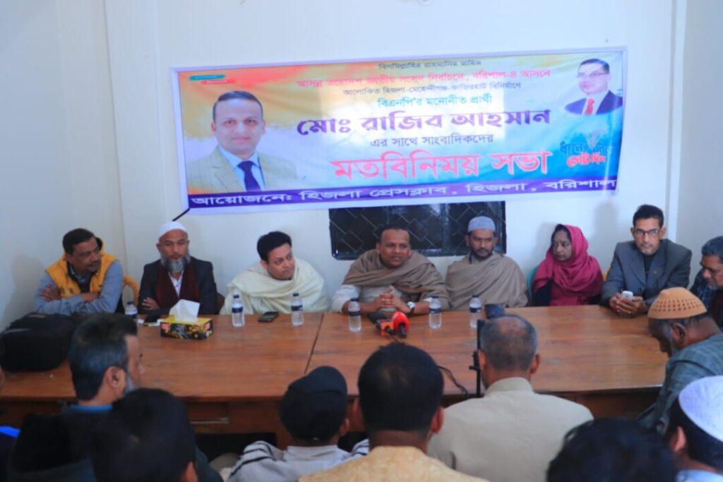 হিজলায় বিএনপির মনোনীত প্রার্থী রাজিব আহসান’ এর সাংবাদিকদের সাথে মতবিনিময় সভা।