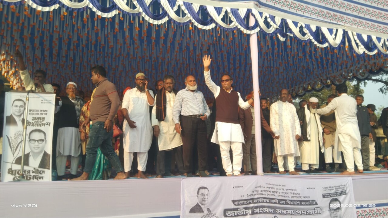 "ভোলাহাটের মাটি বিএনপির ঘাঁটি" এ শ্লোগান নিয়ে চাঁপাইনবাবগঞ্জের ভোলাহাটে ত্রয়োদশ জাতীয় সংসদ নির্বাচন ২০২৬ এর বিশাল জনসমুদ্রে জনসভা (০৮ ফেব্রয়ারী ২০২৬) চাঁপাইনবাবগঞ্জ-২ আসনের বিএনপি মনোনীত প্রার্থী সাবেক এমপি ও কেন্দ্রীয় বিএনপির শিল্প ও বাণিজ্য বিষয়ক সম্পাদক আলহাজ্ব মোঃ আমিনুল ইসলাম।এ সময় তার সাথে উপস্থিত ছিলেন, জেলা বিএনপির সাংগঠনিক সম্পাদক আলহাজ্ব মোঃ আব্দুস সালাম তুহিন, যুবদলের সাবেক সভাপতি আসাদুল্লাহ্ আহমেদ, গোমস্তাপুর উপজেলা বিএনপির সদস্য সচিব এ্যাডঃ রফিকুল ইসলাম সেন্টু, ভোলাহাট উপজেলা পরিষদের সাবেক উপজেলা চেয়ারম্যান সহকারী অধ্যাপক মোঃ আনোয়ারুল ইসলাম আনোয়ার ও আলহাজ্ব মোঃ বাবর আলী বিশ্বাস, সাবেক উপজেলা ভাইস চেয়ারম্যান মোঃ কামাল হোসেন, মহিলা ভাইস চেয়ারম্যান রেশমাতুল আরস রেখা।অনুষ্ঠানে উপজেলা বিএনপির সিনিয়র সহসভাপতি ও সাবেক ইউপি চেয়ারম্যান মোঃ মাহাতাব উদ্দিনের সভাপতিত্বে অন্যান্যের মধ্যে সাবেক যুগ্ম সাধারণ সম্পাদক সহ: অধ্যাপক মোঃ আল-হেলাল, সাংগঠনিক সম্পাদক কাওশারুল ইসলাম রঞ্জু, সাবেক ইউপি চেয়ারম্যান মোঃ আব্দুল কাদের, ৩নং ইউনিয়ন বিএনপির সাবেক সভাপতি আলাউদ্দিন ঠিকাদার, জেলা স্বেচ্ছাসেবক দলের সাবেক ভারপ্রাপ্ত সভাপতি মিজানুর রহমান মিজু, যুবদলের সাবেক সভাপতি বেলাল উদ্দিন, সাধারণ সম্পাদক মোঃ মুনসুর আলী, উপজেলা ছাত্রদলের সাবেক সাধারণ সম্পাদক ও এমপির ব্যক্তিগত সহকারী কায়সার আহমেদসহ উপজেলা বিএনপি ও অঙ্গসংগঠনের নেতাকর্মীগণ।