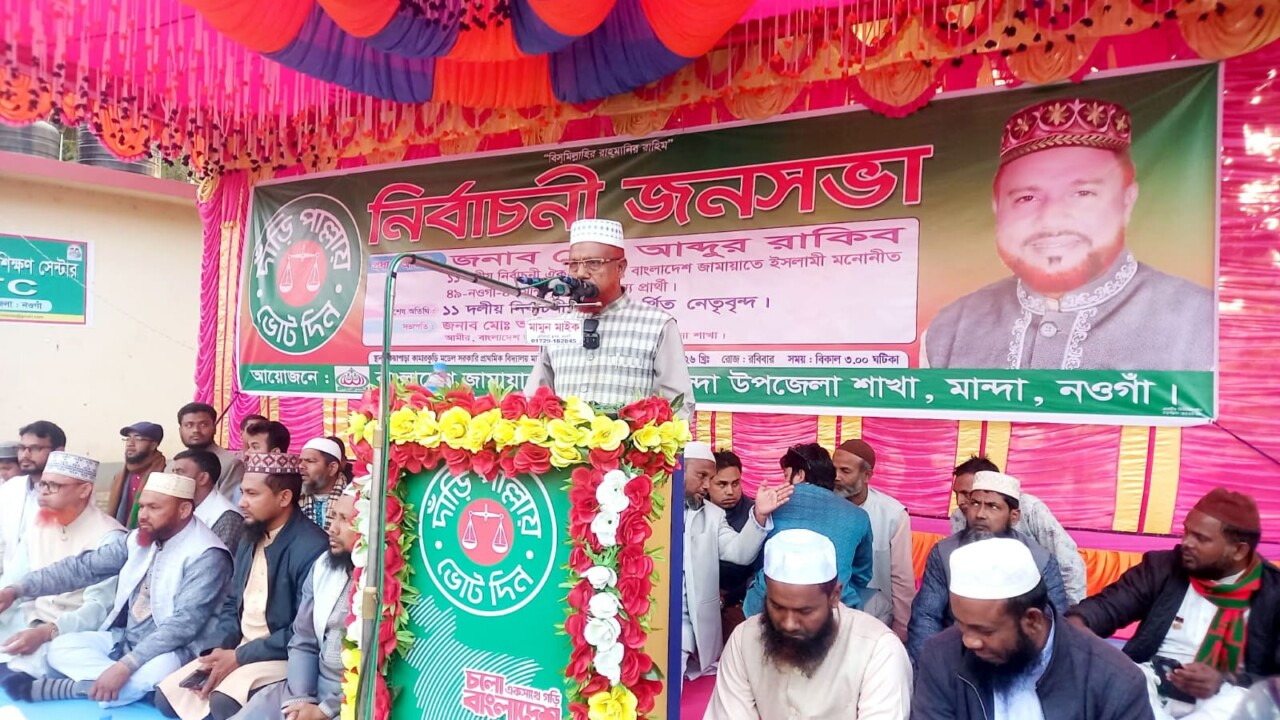 নওগাঁ-৪ (মান্দা) আসনের জামায়াত প্রার্থী মোঃ আব্দুর রাকিব বলেছেন, নির্বাচিত হলে দলকানা হয়ে এমপিগিরি করবেন না এবং শিক্ষা প্রতিষ্ঠানে কমিটির দখলদারিত্ব থাকবে না। তিনি বলেন, দুর্নীতি ও দুঃশাসন জাতীয় সমস্যা, এমপি হলে এসব দূর করতে কাজ করবেন।রোববার (৮ ফেব্রুয়ারি) বিকেলে মান্দা উপজেলার কয়াপাড়া কামারকুড়ি মডেল সরকারি প্রাথমিক বিদ্যালয় মাঠে উপজেলা জামায়াত আয়োজিত নির্বাচনী জনসভায় প্রধান অতিথির বক্তব্যে তিনি এসব কথা বলেন।উন্নয়নের প্রতিশ্রুতি দিয়ে তিনি বলেন, গত ১৬ বছর মান্দা উন্নয়ন থেকে বঞ্চিত ছিল। স্বাস্থ্যসেবা আধুনিকীকরণ, শয্যা সংখ্যা বৃদ্ধি, মা ও শিশু চিকিৎসা কেন্দ্র স্থাপন এবং আধুনিক ডাকবাংলো নির্মাণ করা হবে। প্রসাদপুরকে পৌরসভায় রূপান্তর ও একাধিক ব্রিজ নির্মাণের কথাও জানান তিনি।কর্মসংস্থান প্রসঙ্গে আব্দুর রাকিব বলেন, কারিগরি প্রশিক্ষণের মাধ্যমে বেকারদের কর্মক্ষম করে তোলা হবে এবং পাটজাত শিল্প গড়ে কর্মসংস্থান সৃষ্টি করা হবে।উপজেলা জামায়াতের আমীর আমিনুল ইসলামের সভাপতিত্বে সভায় আরও বক্তব্য রাখেন জেলা জামায়াতের নেতৃবৃন্দসহ স্থানীয় নেতারা।জনসভায় উপজেলার ১৪টি ইউনিয়ন থেকে কয়েক হাজার কর্মী-সমর্থক অংশ নেন। পরে একটি গণমিছিল প্রসাদপুর বাজারে গিয়ে শেষ হয়।