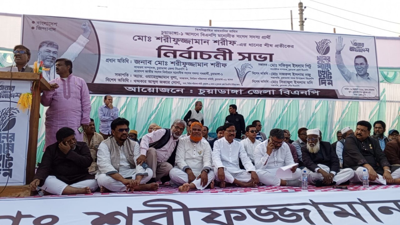 আসন্ন ত্রয়োদশ জাতীয় সংসদ নির্বাচনকে সামনে রেখে চুয়াডাঙ্গা-১ আসনে বাংলাদেশ জাতীয়তাবাদী দল (বিএনপি) মনোনীত সংসদ সদস্য প্রার্থী মোহাম্মদ শরীফুজ্জামান শরীফের ধানের শীষ প্রতীকের নির্বাচনী সভা অনুষ্ঠিত হয়েছে।আজ সোমবার (৯ ফেব্রুয়ারি) বিকেল ৩টায় চুয়াডাঙ্গা টাউন ফুটবল মাঠে চুয়াডাঙ্গা জেলা বিএনপির আয়োজনে এ সভা অনুষ্ঠিত হয়। সভায় বিএনপি ও অঙ্গসংগঠনের নেতাকর্মী, সমর্থক এবং সাধারণ মানুষের ব্যাপক উপস্থিতি লক্ষ্য করা যায়।চুয়াডাঙ্গা জেলা বিএনপির সাংগঠনিক সম্পাদক মোহাম্মদ শফিকুল ইসলাম পিটুর সঞ্চালনায় এবং চুয়াডাঙ্গা-১ আসনের নির্বাচন পরিচালনা কমিটির আহ্বায়ক অ্যাডভোকেট ওয়াহিদুজ্জামান বুলার সভাপতিত্বে সভাটি অনুষ্ঠিত হয়।সভায় প্রধান অতিথি হিসেবে উপস্থিত ছিলেন চুয়াডাঙ্গা-১ আসনের ত্রয়োদশ জাতীয় সংসদ নির্বাচনে বিএনপি মনোনীত প্রার্থী ও চুয়াডাঙ্গা জেলা বিএনপির সাধারণ সম্পাদক মোহাম্মদ শরীফুজ্জামান শরীফ।বিশেষ অতিথি হিসেবে উপস্থিত ছিলেন নির্বাচন পরিষদ কমিটির সদস্য ও জেলা বিএনপির সিনিয়র সদস্য খন্দকার আব্দুল জব্বার সোনা, চুয়াডাঙ্গা সদর উপজেলা বিএনপির সভাপতি মো. নজরুল ইসলাম নজু এবং চুয়াডাঙ্গা পৌর বিএনপির সভাপতি মোহাম্মদ সিরাজুল ইসলাম মনি।সভায় বক্তব্য রাখেন শরিফুজ্জামান শরীফের বড় ভাই শাহীদুজ্জামান টরিক (সিআইপি)। তিনি বলেন, বর্তমানে ফেসবুক ও বিভিন্ন সামাজিক যোগাযোগমাধ্যমে নানা ধরনের প্রচারণা চলছে। কিন্তু আমরা সবাই জানি ভোট ফেসবুকে হয় না। ভোট হয় মাঠে, ভোট হয় কেন্দ্রে, ভোট হয় মহল্লায় এবং ভোট হয় মানুষের ঘরে ঘরে।তিনি আরও বলেন, নতুন ভোটার ও তরুণ সমাজের প্রতি আমার আহ্বান আপনারা আপনাদের আশপাশের বয়স্কদের কাছে জিজ্ঞাসা করুন, বাংলাদেশের ইতিহাসে জামায়াতে ইসলামের ভূমিকা কী ছিল। যে বাংলা ভাষায় আমরা কথা বলছি এবং যে লাল-সবুজের পতাকা আমরা ধারণ করছি তার পেছনে রয়েছে অসংখ্য শহীদের আত্মত্যাগ। তিনি সবাইকে ধানের শীষ প্রতীকে ভোট দিয়ে মোহাম্মদ শরীফুজ্জামান শরীফকে বিজয়ী করার আহ্বান জানান।প্রধান অতিথির বক্তব্যে মোহাম্মদ শরীফুজ্জামান শরীফ বলেন, আজ ৯ ফেব্রুয়ারি দীর্ঘ প্রচারণার শেষ দিন। গত কয়েক মাস ধরে আমি আপনাদের দ্বারে দ্বারে গিয়েছি। আপনারা আমাকে যে ভালোবাসা ও সমর্থন দিয়েছেন, তার জন্য আমি আজীবন ঋণী।তিনি বলেন, আমি শুধু ভোট চাইনি, আপনাদের দুঃখ-কষ্ট, সম্ভাবনা ও স্বপ্নের কথা শুনেছি। শহীদ প্রেসিডেন্ট জিয়াউর রহমান এই দেশের অর্থনীতির ভিত্তি গড়ে তুলেছিলেন। আপসহীন নেত্রী বেগম খালেদা জিয়া নারী শিক্ষাকে অবৈতনিক করে নারীদের ক্ষমতায়নের পথ সুগম করেছেন।আগামীর পরিকল্পনা তুলে ধরে তিনি বলেন, আমাদের নেতা তারেক রহমান আধুনিক বা