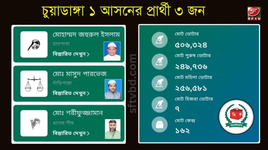 চুয়াডাঙ্গা–১ আসনে মোট ভোটার সংখ্যা ৫,০৬,৩২৪ জন। এর মধ্যে—