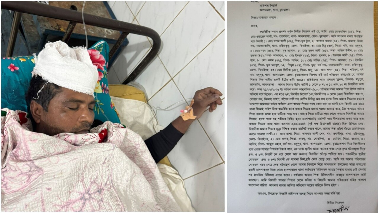 আলমডাঙ্গায় পিতাকে হত্যাচেষ্টার অভিযোগ, ১৪ জনের বিরুদ্ধে থানায় লিখিত অভিযোগ