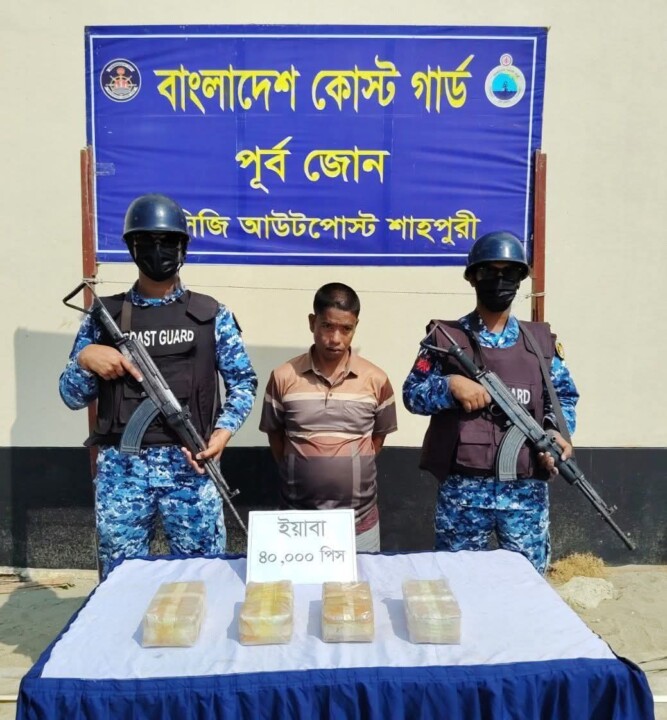 কক্সবাজারের টেকনাফে নাফ নদীতে বিশেষ অভিযান চালিয়ে প্রায় ২ কোটি টাকা মূল্যের ৪০ হাজার পিস ইয়াবাসহ মিয়ানমারের এক নাগরিককে আটক করেছে বাংলাদেশ কোস্ট গার্ড।মঙ্গলবার (২৪ ফেব্রুয়ারি) ভোরে টেকনাফের শাহপরীর দ্বীপ সংলগ্ন সীমান্ত এলাকায় এ অভিযান পরিচালনা করা হয়।কোস্ট গার্ড সদর দপ্তরের মিডিয়া কর্মকর্তা লেফটেন্যান্ট কমান্ডার সিয়াম-উল-হক জানান, ভোর ৫টার দিকে জালিয়াপাড়া সংলগ্ন নাফ নদীতে কোস্ট গার্ডের একটি দল অবস্থান নেয়। এ সময় সন্দেহজনক একটি কাঠের বোটকে থামার সংকেত দেওয়া হলে তল্লাশি চালিয়ে পলিথিনে মোড়ানো অবস্থায় ৪০ হাজার পিস ইয়াবা উদ্ধার করা হয়।আটক ব্যক্তি নুরুস সাফা (৪৭), তিনি মিয়ানমারের মংডুর নাপিতের ডেইল এলাকার মৃত বাছা মিয়ার ছেলে। বোটের চালক ও মাদক পাচারকারীকে হাতেনাতে আটক করা হয়। পাচারকাজে ব্যবহৃত কাঠের বোটটিও জব্দ করা হয়েছে।