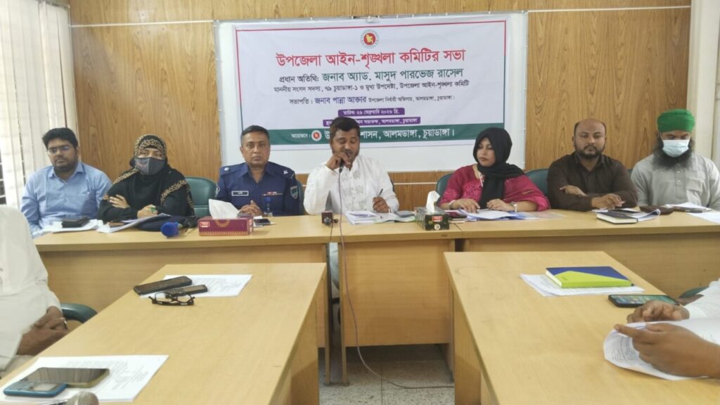 আলমডাঙ্গা উপজেলা আইন-শৃঙ্খলা কমিটির মাসিক সভা অনুষ্ঠিত হয়েছে। বৃহস্পতিবার (২৬/০২/২০২৬) সকাল ১১টায় উপজেলা প্রশাসনের আয়োজনে উপজেলা পরিষদ সভা কক্ষে এ সভা অনুষ্ঠিত হয়।