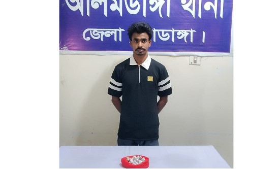 চুয়াডাঙ্গার আলমডাঙ্গা উপজেলায় মাদকবিরোধী বিশেষ অভিযানে ৫০ গ্রাম গাঁজাসহ এক ব্যক্তিকে গ্রেফতার করেছে বাংলাদেশ পুলিশ-এর আলমডাঙ্গা থানা পুলিশ। বৃহস্পতিবার (৫ মার্চ) দুপুরে উপজেলার তিয়রবিলা পুলিশ ক্যাম্পের উদ্যোগে পরিচালিত অভিযানে তাকে আটক করা হয়। পুলিশ সূত্রে জানা যায়, তিয়রবিলা পুলিশ ক্যাম্পের এসআই (নিঃ) মানিক কুমার শিকদার সঙ্গীয় ফোর্সসহ ক্যাম্প এলাকায় মাদকদ্রব্য উদ্ধারে বিশেষ অভিযান পরিচালনা করছিলেন। এ সময় গোপন সংবাদের ভিত্তিতে অভিযান চালিয়ে তালুককররা গ্রামের ইউসুফ আলীর ছেলে উজ্জ্বল হোসেন (৩০)-কে তার নিজ বসতবাড়ির পেছন থেকে আটক করা হয়।