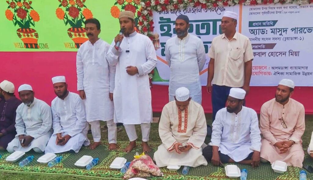 পবিত্র মাহে রমজান উপলক্ষে চুয়াডাঙ্গা জেলার আলমডাঙ্গা উপজেলার কেন্দ্রীয় ঈদগাহ ময়দানে ইফতার ও দোয়া মাহফিল অনুষ্ঠিত হয়েছে। এতে প্রধান অতিথির বক্তব্যে চুয়াডাঙ্গা-১ আসনের সংসদ সদস্য অ্যাডভোকেট মাসুদ পারভেজ রাসেল দুর্নীতি, মাদক, সন্ত্রাস ও চাঁদাবাজমুক্ত সমাজ গঠনে সকলকে ঐক্যবদ্ধভাবে কাজ করার আহ্বান জানান।