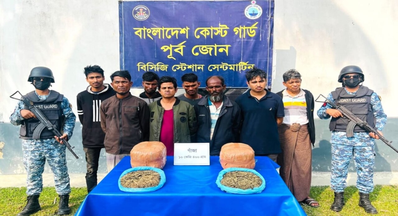 সেন্টমার্টিনে কোস্ট গার্ডের অভিযানে গাঁজাসহ ৯ মাদক পাচারকারী আটক