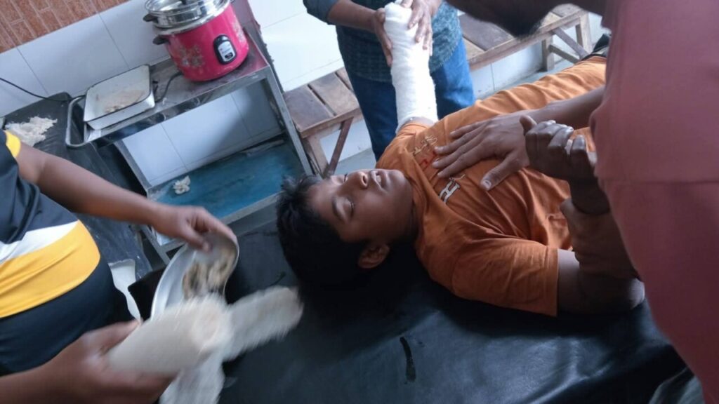 আহতরা হলো— রনক (১৩), পিতা: জাকির হোসেন; হুচাইন (১০), পিতা: উজ্জ্বল আলী; ও আলমিয়া (১০), পিতা: আমদ আলী।
