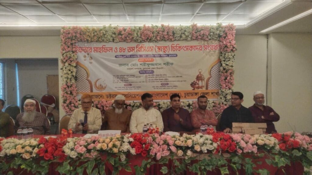 ডক্টরস অ্যাসোসিয়েশন অব বাংলাদেশ (ড্যাব) চুয়াডাঙ্গা শাখার উদ্যোগে ৪৮তম বিসিএস (স্বাস্থ্য) ক্যাডারের নবীন চিকিৎসকদের সংবর্ধনা ও ইফতার মাহফিল অনুষ্ঠিত হয়েছে।