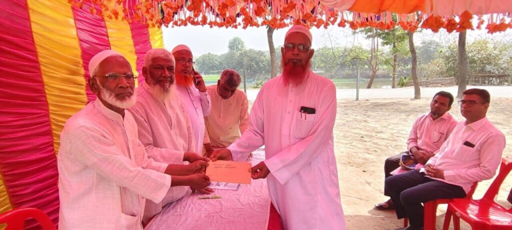 ভোলাহাট উপজেলা (প্রতিনিধি) : চাঁপাইনবাবগঞ্জের ভোলাহাট উপজেলার ৩ নং দলদলী ইউনিয়নে ২১ শে পদক প্রাপ্ত (২০২৪) সাদা মনের মানুষ জনাব জিয়াউল হক এর উদ্যোগে বিভিন্ন প্রতিষ্ঠানের মাঝে লক্ষাধিক টাকা বিতরন ও আর্থিক সহায়তা করা হয়।প্রতি বছরের ন্যায় এবারও ২৮ শে রমজান (১৮ মার্চ ) বুধবার দুপুর ১ টার দিকে জিয়াউল হকের সাধারন পাঠাগারে এই আয়োজন করা হয়।জিয়াউল হক সাধারণ পাঠাগার ট্রাস্টের পরিচালক ও তরুন সংগঠক মহাব্বত হক বাঁধন এর সভাপতিত্বে এবং জনাব কাওকাবুল হক মাষ্টার এর সঞ্চালনায় প্রধান অতিথি হিসেবে উপস্থিত ছিলেন ২১ শে পদক প্রাপ্ত জনাব জিয়াউল হক, আরও উপস্থিত ছিলেন বিশিষ্ট ব্যবসায়ী জনাব গোলাম মোহাম্মদ ফিটু মিয়া,ইসলামিক ফাউন্ডেশনের সাবেক উপ পরিচালক জনাব সুলতান আহমাদ, মাওলানা জামালউদ্দিন কাশেমি,মাওলানা মিনহাজ উদ্দিন, প্রবীন শিক্ষক জনাব আজমুল হক মাষ্টার,আলিনগর বালিকা উচ্চ বিদ্যালয়ের প্রধান শিক্ষক জনাব আলাউদ্দিন সহ বিভিন্ন প্রতিষ্ঠান থেকে আগত শুধিজনেরা।এসময় বিভিন্ন প্রতিষ্ঠান ও গরীব, দুঃখি,অসহায় দের মধ্যে ১ লক্ষ ৩০ হাজার টাকা প্রদান করা হয়।এসময় জিয়াউল হক বলেন,সংশ্লিষ্ট সকল কে আন্তরিক ধন্যবাদ।এবং সামনের দিন গুলোতে এভাবে যেন মানুষের পাশে থেকে যেতে পারি তাহলে আমার লক্ষ্য ও উদ্দেশ্য সফল হবে।