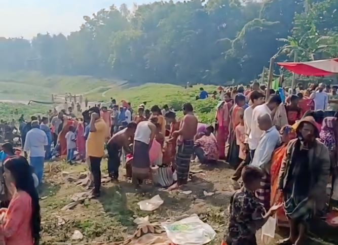 টাঙ্গাইলের কালিহাতীতে মহাষ্টমী উপলক্ষে ঝিনাই নদীর তীরে ২৬ মার্চ (বৃহস্পতিবার) অনুষ্ঠিত হয়েছে সনাতন ধর্মাবলম্বীদের পবিত্র পুণ্যস্নান। ভোরের নরম আলো আর কুয়াশার চাদর ভেদ করে সূর্য ওঠার আগেই নদীর ঘাটে নেমে আসে ভক্তদের ঢল ধর্মীয় আবহে মুখর হয়ে ওঠে পুরো এলাকা। দূর-দূরান্ত থেকে আসা নারী-পুরুষ ভক্তরা গভীর বিশ্বাস ও আধ্যাত্মিক অনুভূতিতে ঝিনাই নদীর জলে অবগাহন করেনঅনেকেই পরিবার-পরিজনসহ অংশ নিয়ে এই আয়োজনকে এক অনন্য মিলনমেলায় পরিণত করেন, যেখানে ভক্তি আর আনন্দ মিলেমিশে সৃষ্টি করে এক অপূর্ব পরিবেশ।স্নান শেষে ভক্তরা ছুটে যান কালিহাতীর ঐতিহ্যবাহী কেন্দ্রীয় জয়কারী মন্দিরে। সেখানে দিনব্যাপী পূজার্চনা, ভোগ নিবেদন এবং প্রসাদ বিতরণের মধ্য দিয়ে চলে ধর্মীয় আনুষ্ঠানিকতা। ভক্তদের উপস্থিতিতে মন্দির প্রাঙ্গণ হয়ে ওঠে প্রাণচঞ্চল ও উৎসবমুখর।এই ধর্মীয় উৎসবকে ঘিরে মন্দির সংলগ্ন এলাকায় বসেছে বর্ণিল মেলা। মেলায় শিশুদের জন্য রঙিন খেলনা, নানা ধরনের মিষ্টান্ন ও দেশীয় খাবারের দোকান সাজিয়ে বসেছেন বিক্রেতারা। ক্রেতা-দর্শনার্থীদের ভিড় আর বিক্রেতাদের প্রাণবন্ত হাঁকডাকে মেলা প্রাঙ্গণ জমে ওঠে প্রাণের উচ্ছ্বাসে।স্থানীয়দের মতে, প্রতিবছরের মতো এবারও শান্তিপূর্ণ ও আনন্দঘন পরিবেশে অনুষ্ঠিত হয়েছে মহাষ্টমীর পুণ্যস্নান। ধর্মীয় অনুশাসনের পাশাপাশি এ আয়োজন হয়ে উঠেছে সাম্প্রদায়িক সম্প্রীতি ও সামাজিক বন্ধনের এক উজ্জ্বল নিদর্শন।